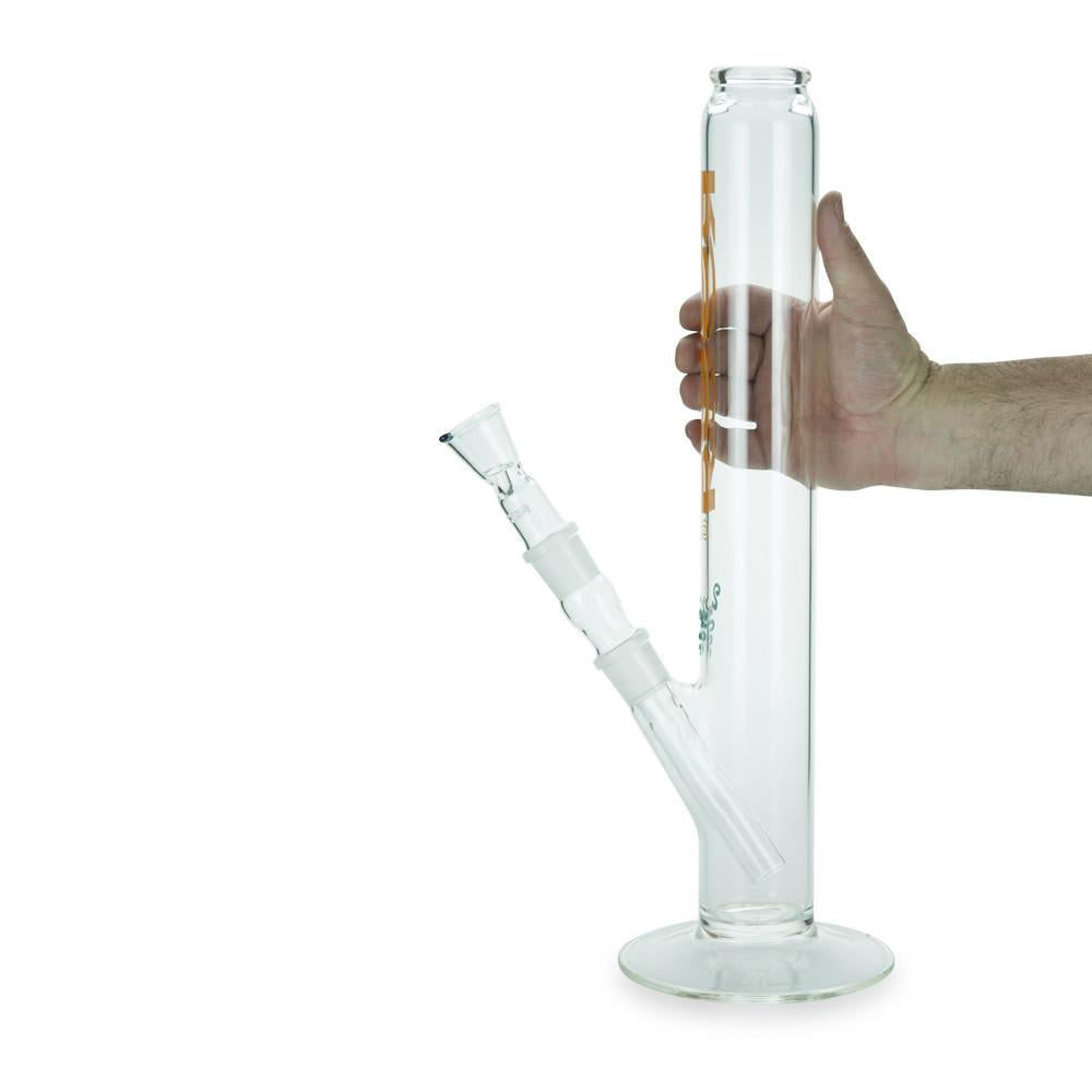 This bong consists of a cylinder, a down tube and a separate lift-off bowl. All Roor glass bongs come complete with a Roor glass gauze.