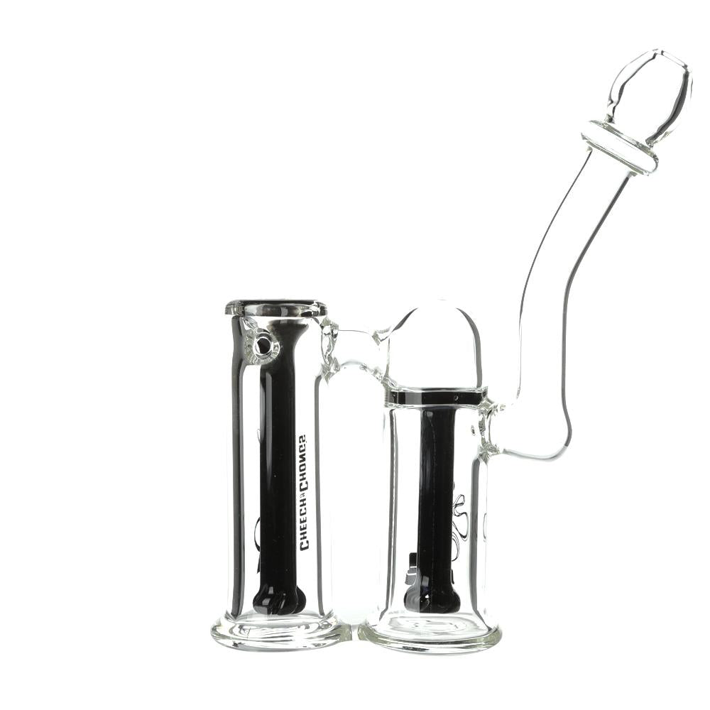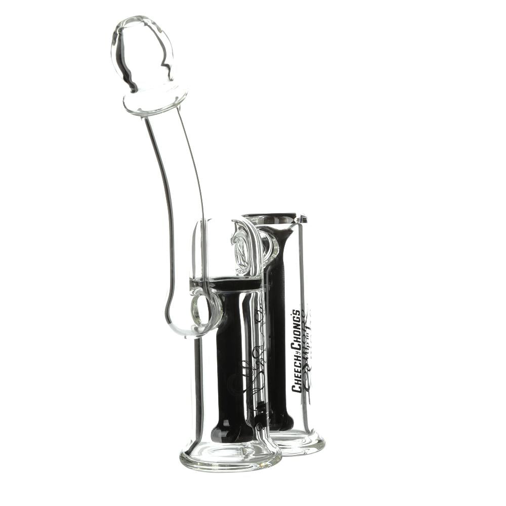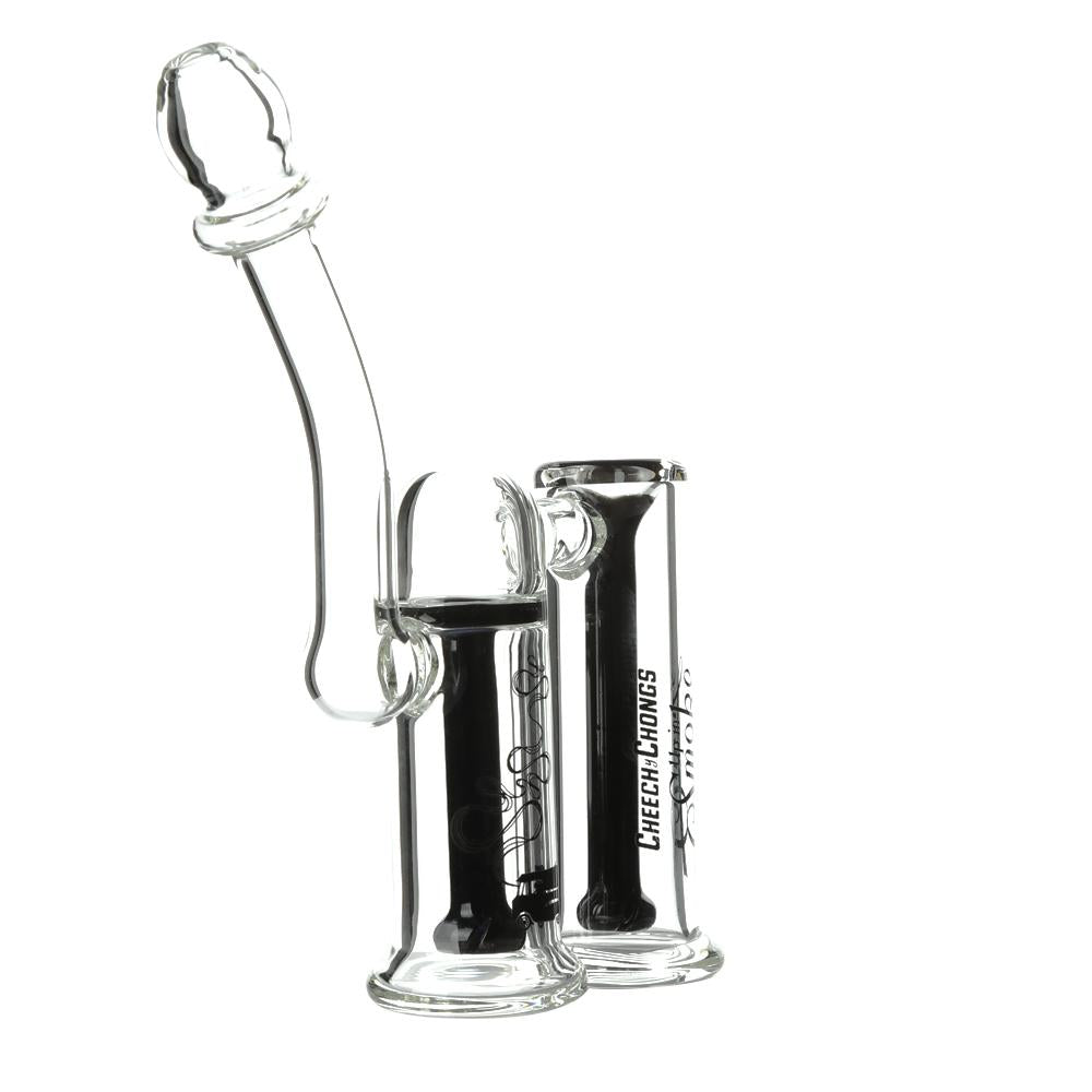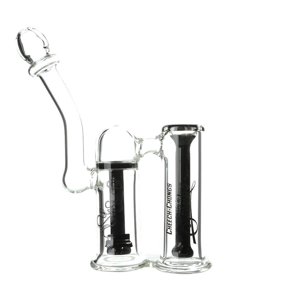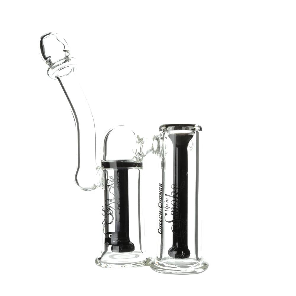 The Clyde is a sick mini double bubbler pipe from the Cheech and Chong Up In Smoke range. It stands at 6.25 inches tall and features a standard bubbler layout except it has two chambers, so you get twice the cooling and twice the filtering of a normal bubbler pipe. The two downstems are colored black and the Cheech and Chong Up In Smoke logo is printed on one chamber while the iconic van is printed on the other.