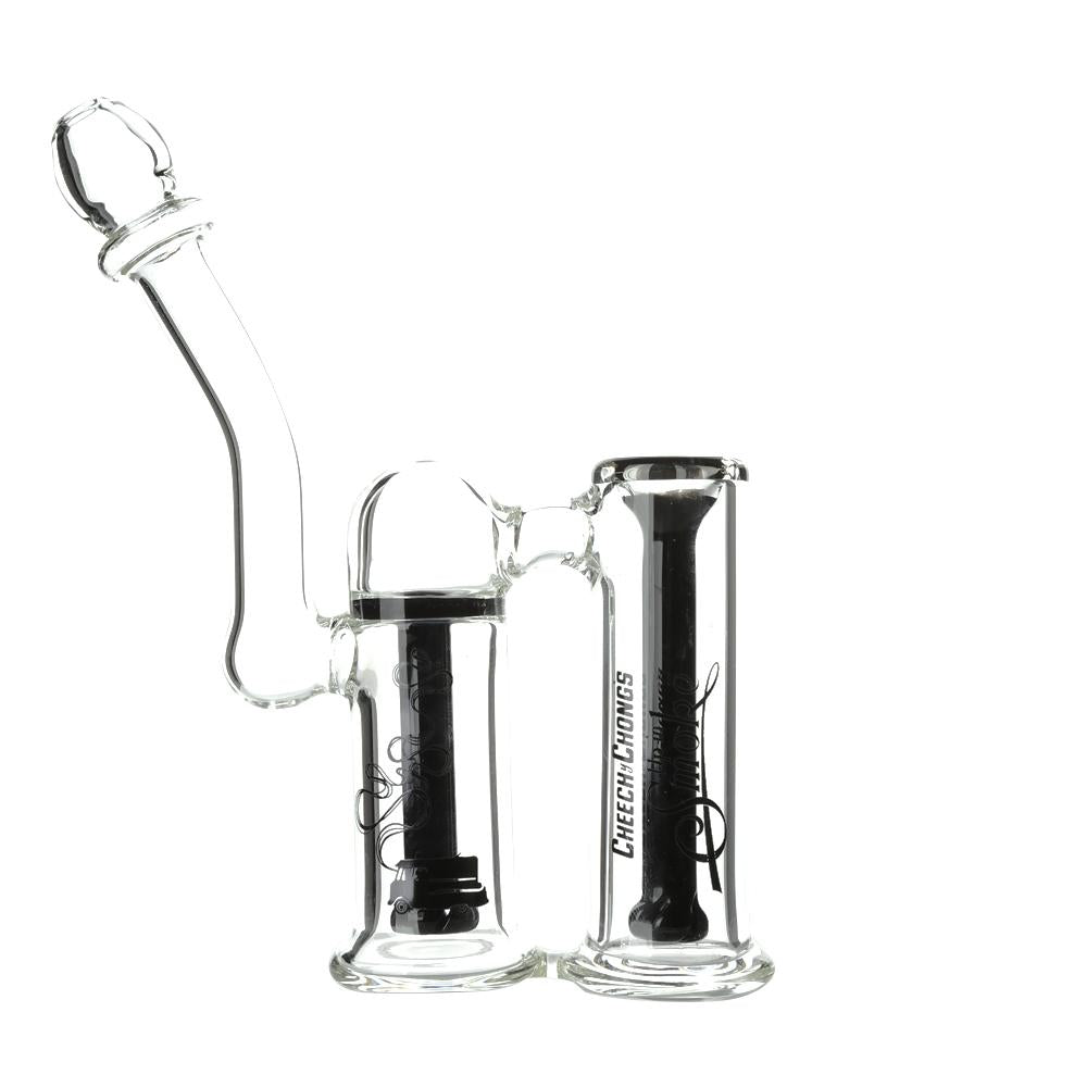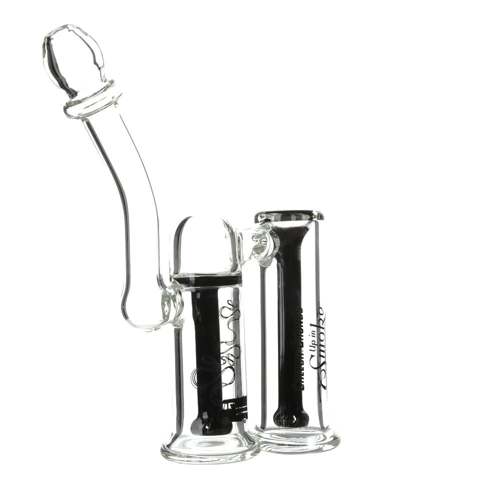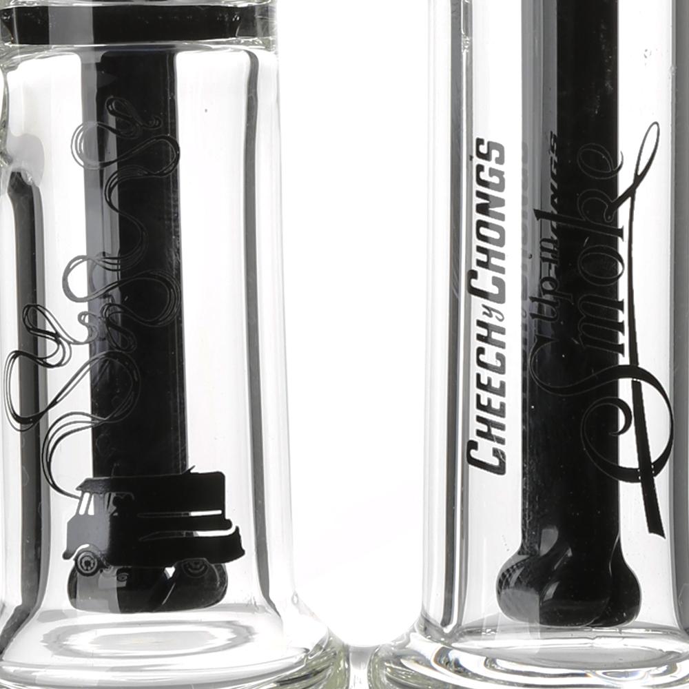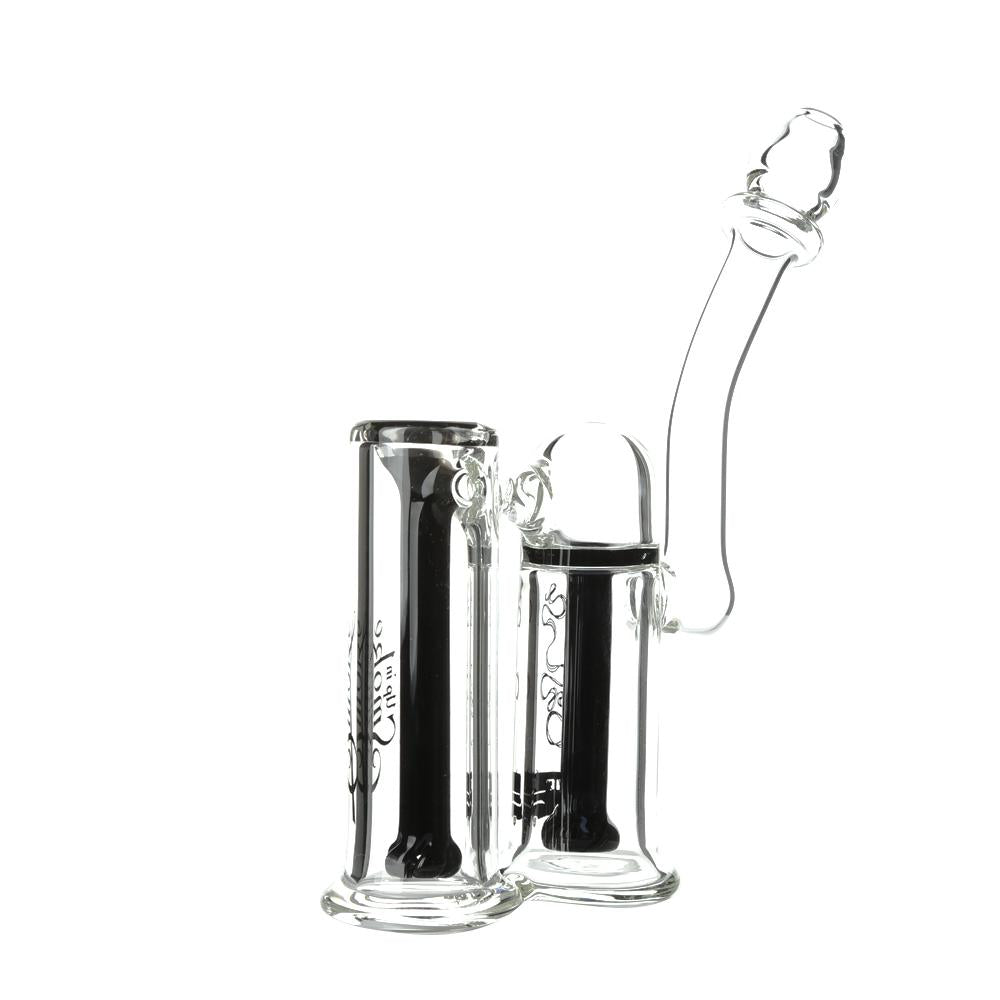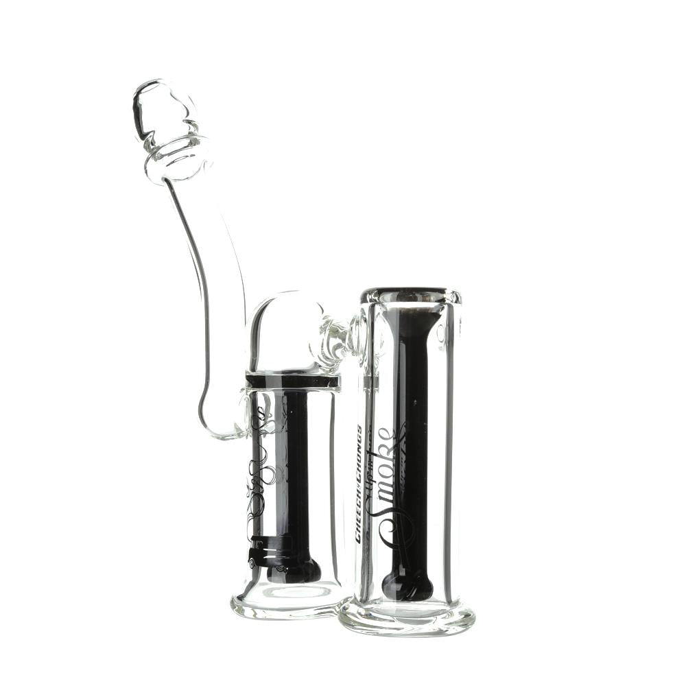 The Clyde is a sick mini double bubbler pipe from the Cheech and Chong Up In Smoke range. It stands at 6.25 inches tall and features a standard bubbler layout except it has two chambers, so you get twice the cooling and twice the filtering of a normal bubbler pipe. The two downstems are colored black and the Cheech and Chong Up In Smoke logo is printed on one chamber while the iconic van is printed on the other.