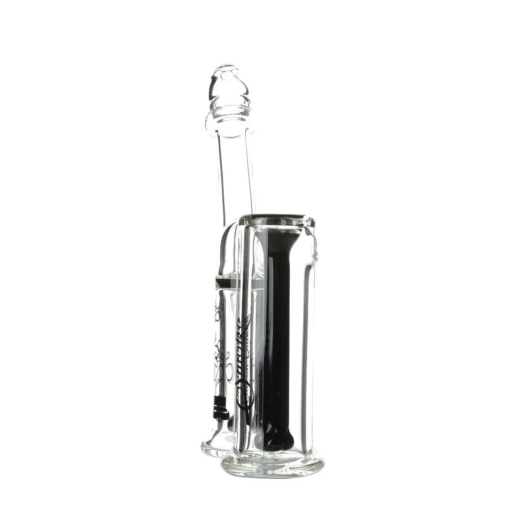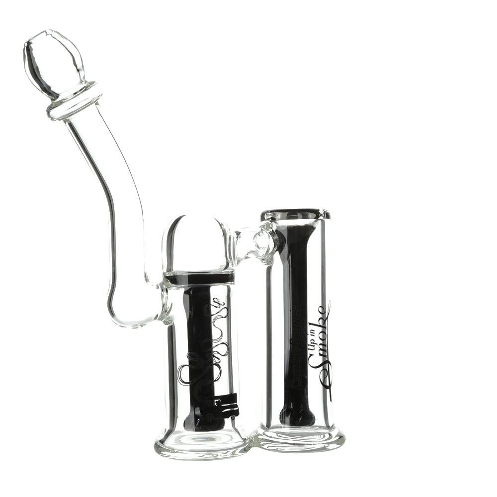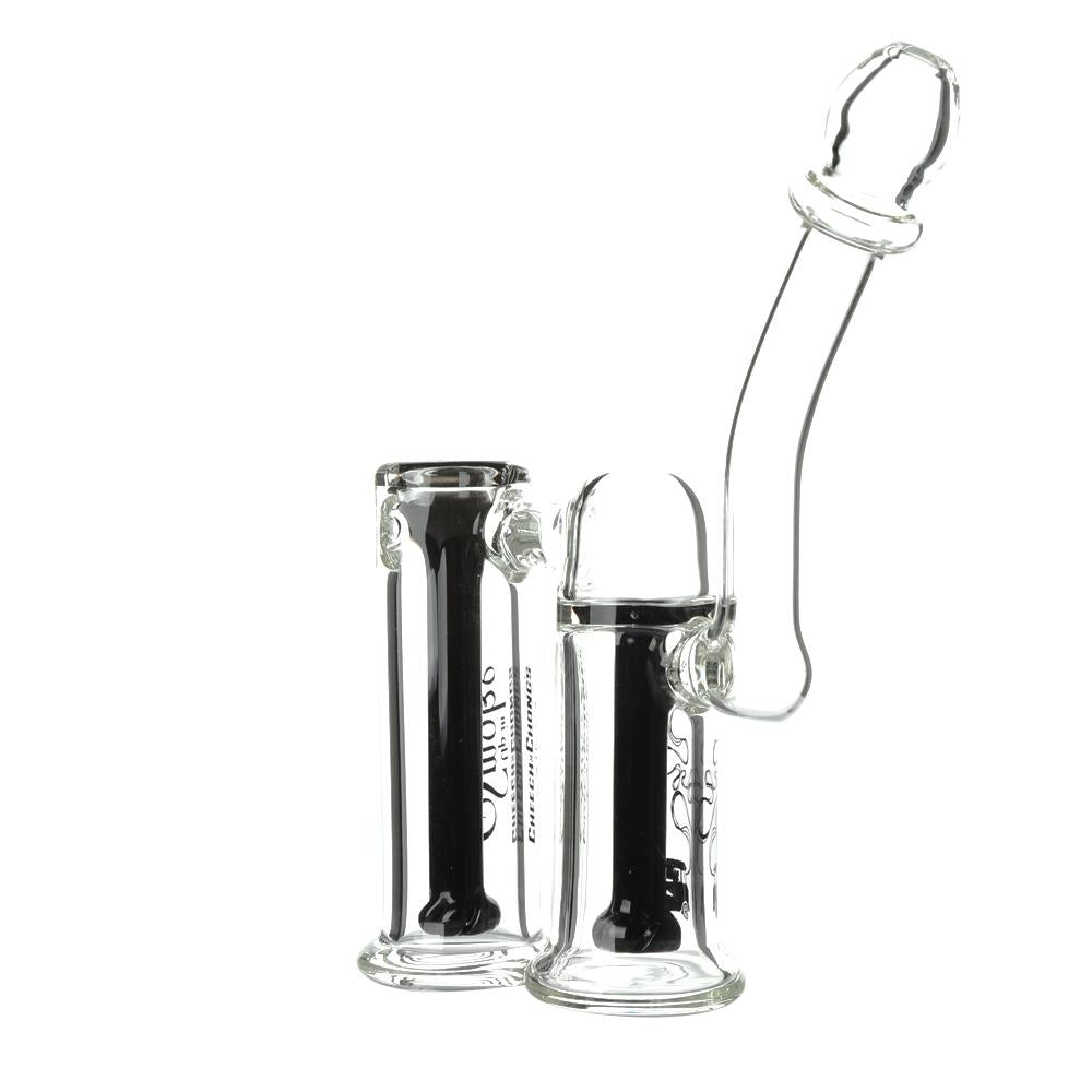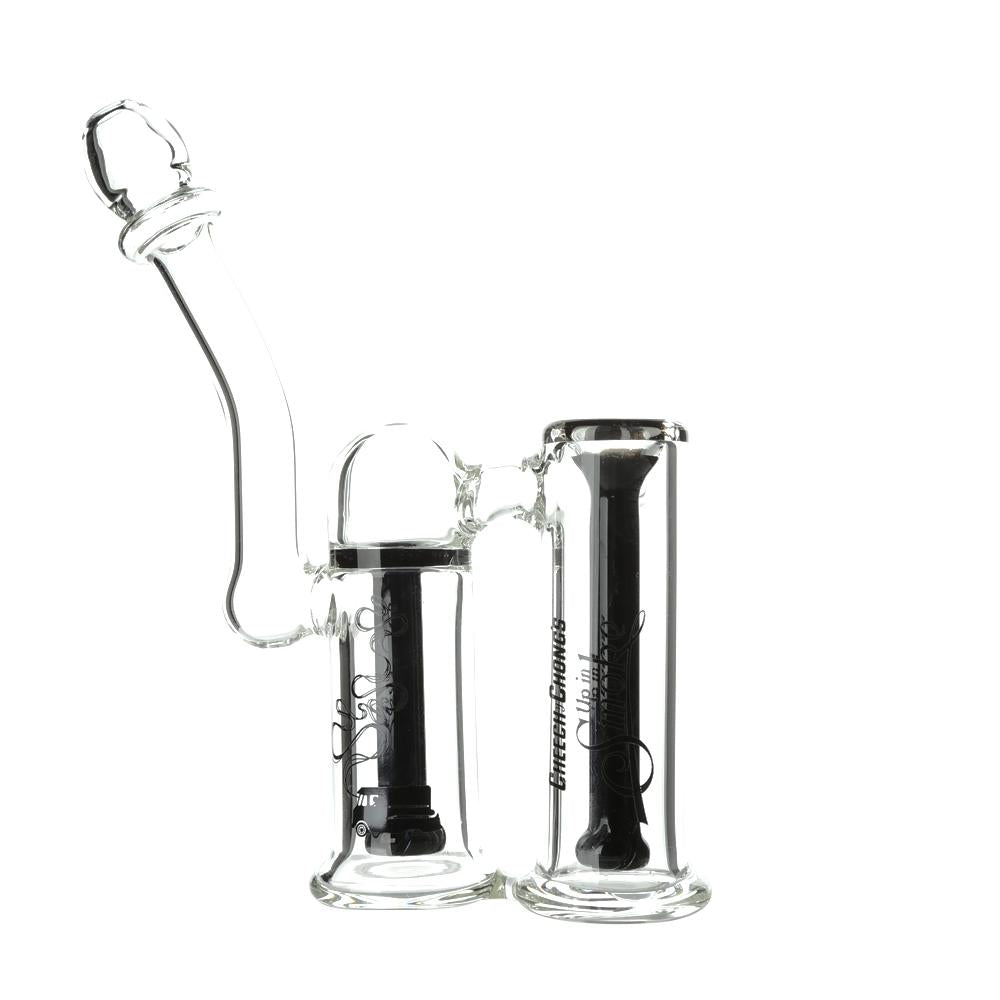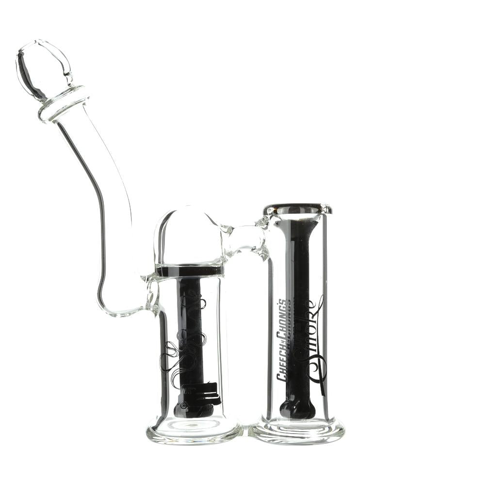 The Clyde is a sick mini double bubbler pipe from the Cheech and Chong Up In Smoke range. It stands at 6.25 inches tall and features a standard bubbler layout except it has two chambers, so you get twice the cooling and twice the filtering of a normal bubbler pipe. The two downstems are colored black and the Cheech and Chong Up In Smoke logo is printed on one chamber while the iconic van is printed on the other.