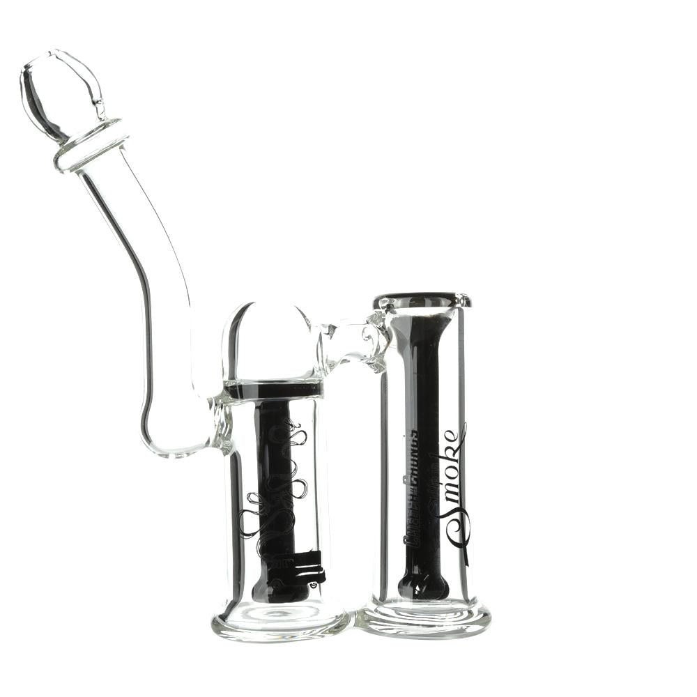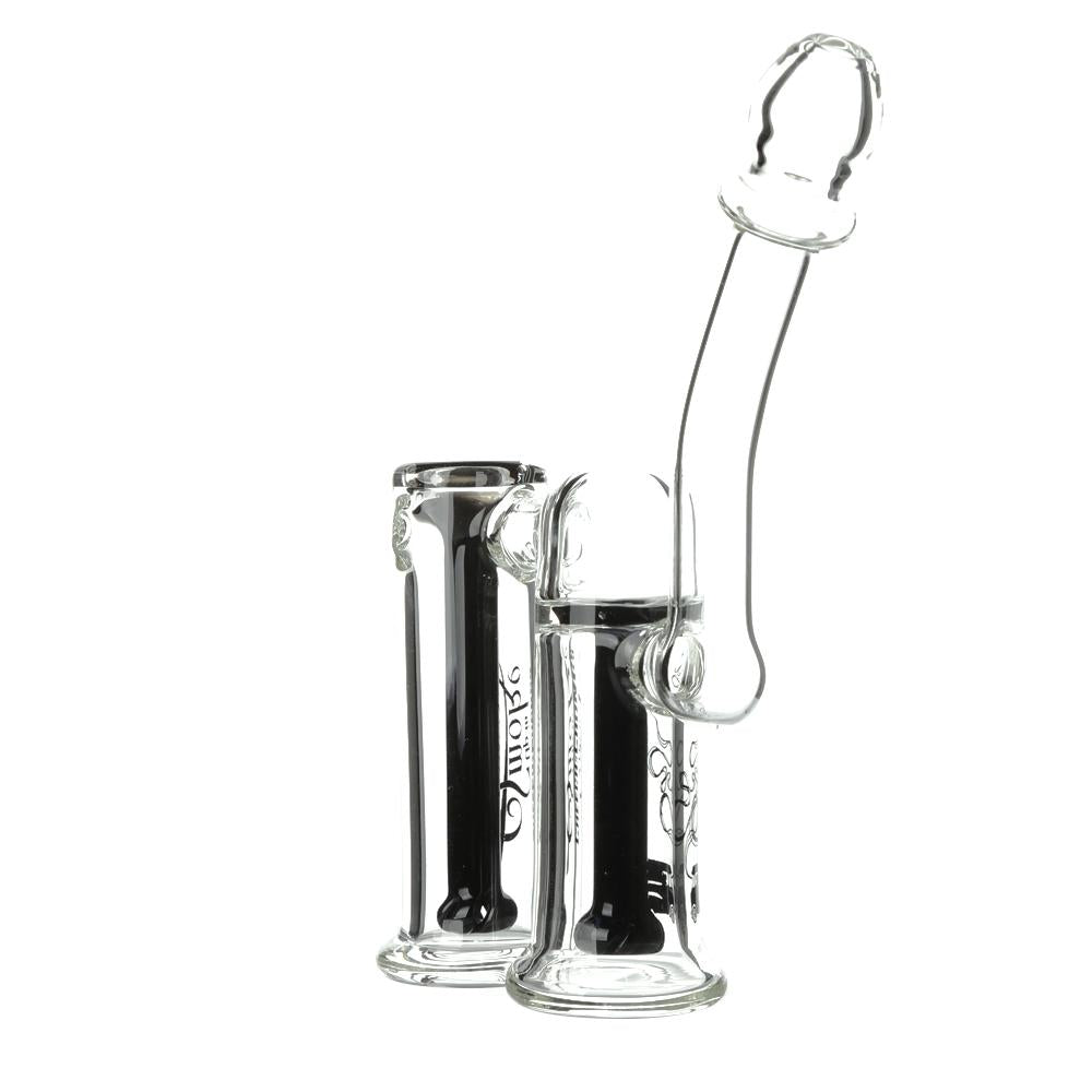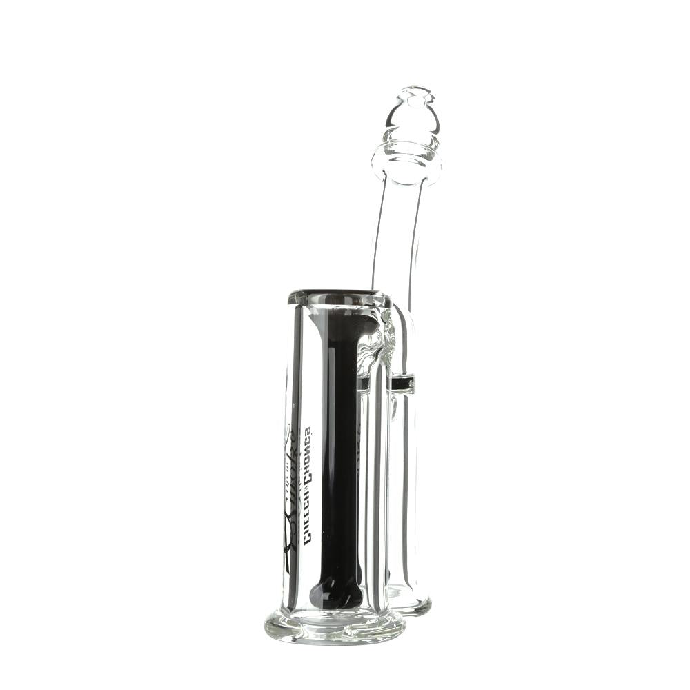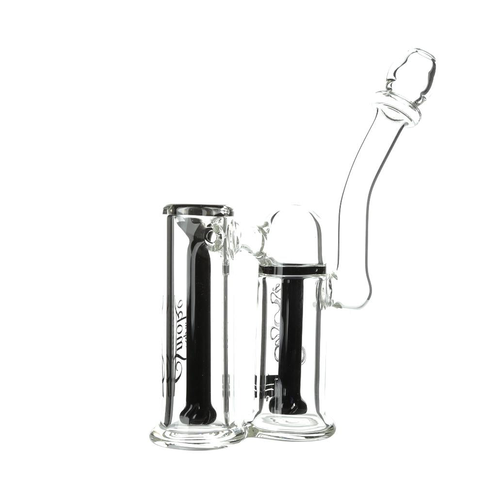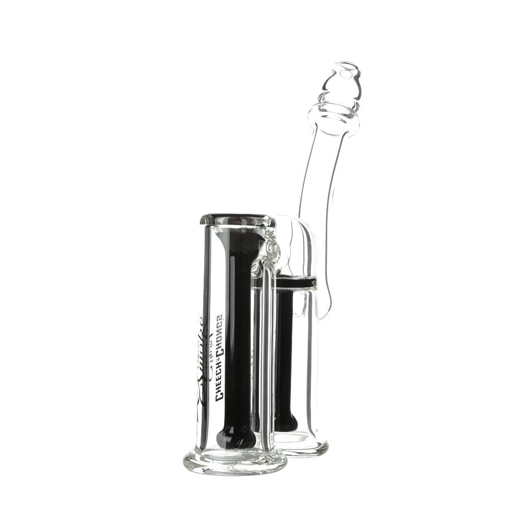 The Clyde is a sick mini double bubbler pipe from the Cheech and Chong Up In Smoke range. It stands at 6.25 inches tall and features a standard bubbler layout except it has two chambers, so you get twice the cooling and twice the filtering of a normal bubbler pipe. The two downstems are colored black and the Cheech and Chong Up In Smoke logo is printed on one chamber while the iconic van is printed on the other.