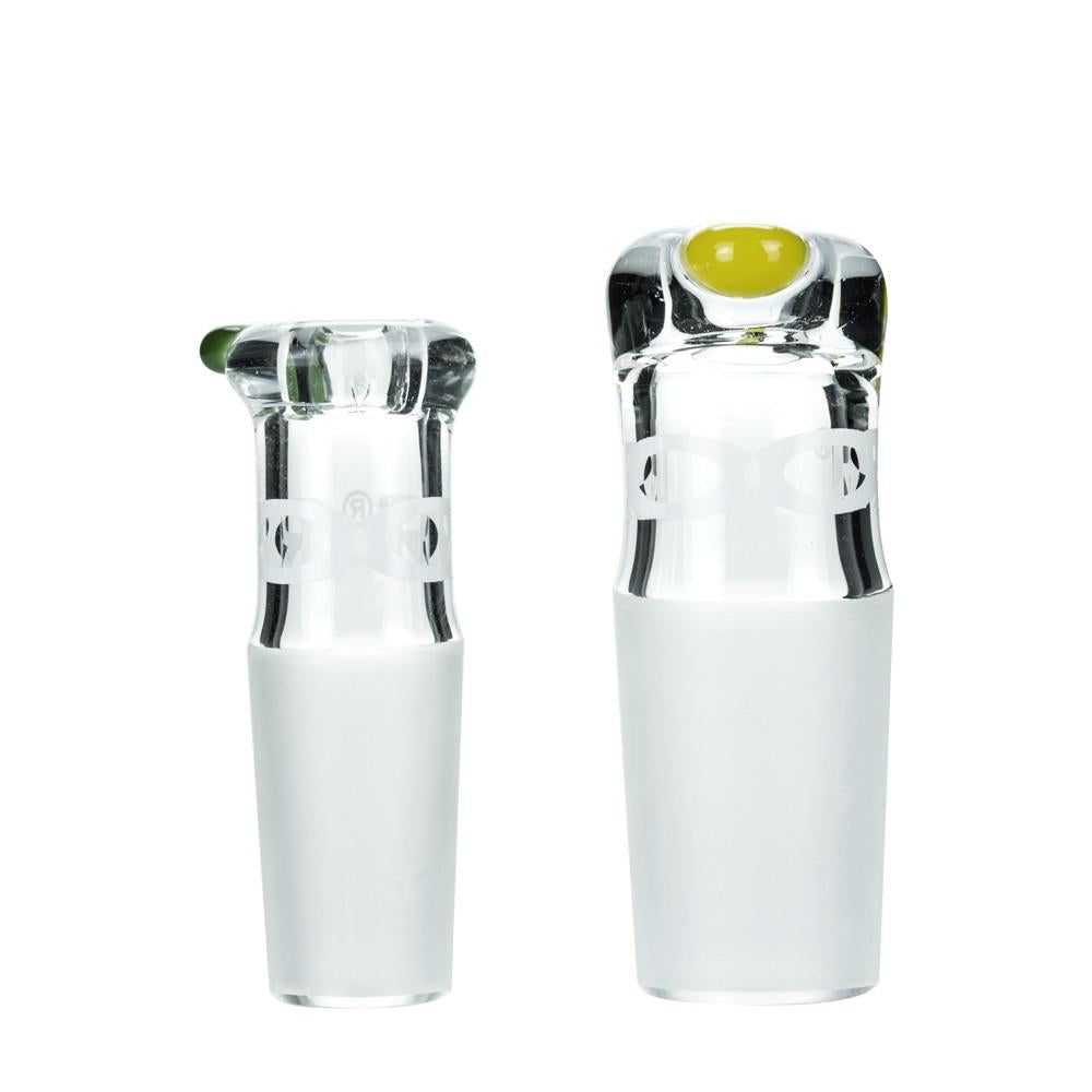 Plug the adaptor into the bong's joint to dramatically reduce the size of the hole so that the end of a rolled cone fits perfectly into it allowing you to draw the smoke through the water.