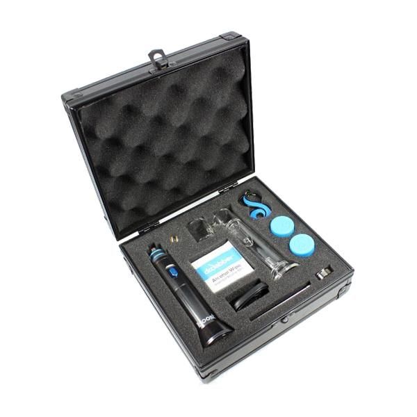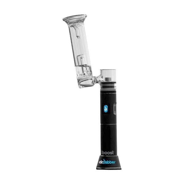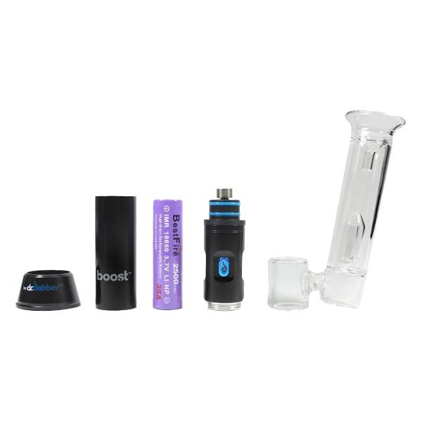 The Dr Dabber Boost is a Battery powered and very portable E-nail vaporizer with many exciting features and designed specifically with concentrates in mind. Dr Dabber was the first to create a portable E-rig and is arguably the best and most popular portable E-nail vaporizer on the market today, If dabbing takes your fancy perhaps the Dr Dabber Boost is perfect for you. The Boost E-Nail vaporizer is a great size for portability even fully assembled standing at about 10 inches tall when the peculator is attached. Powered by an 18650 battery the Boost does not need an external heat source like other E-nails that usually require a blowtorch, with this E-rig you simply power up the unit with 3-5 clicks of the button depending on the E-nail dome you wish to use, wait 25-40 seconds and the Boost E-Rig is ready to use, providing 30-40 uses on a single charge. The Boost is now supplied with 3 E-nail heads to choose from. A dome-less ceramic, quartz and titanium Nail are now included getting rid of the Teflon top that had been previously used in the earlier models.  The E-Rig assembles easily with the majority of its pieces connecting together using cleverly placed magnets with every little detail feeling thought out to provide convenience and usability. Coming supplied in a elegant padded metal case for transport your dabbing device and high quality glass water tool and other accessories that are also supplied, making the Dr Dabber Boost one of the easiest dabbing solutions available. Straight from the mouth of Dr Dabber the Boost eRig truly is the best of both worlds: a portable dabbing experience without any sacrifice.