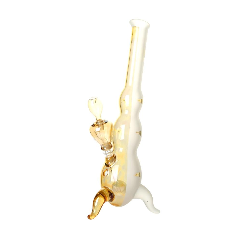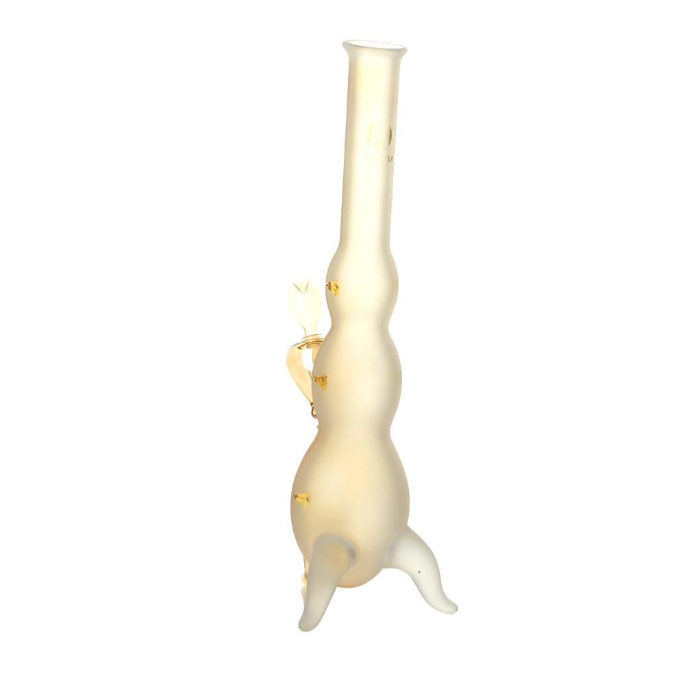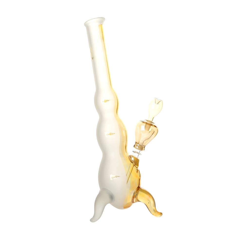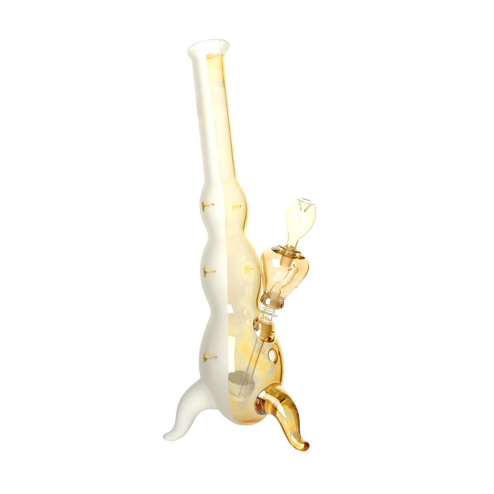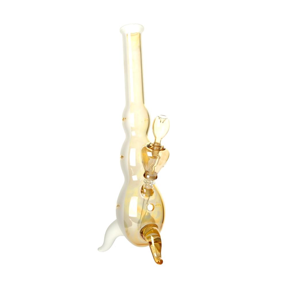 These Goldeneye Hurricane Bongs become more colourful the more you use the piece! This circumstance can be explained by the special characteristics of the silver nitrate mirroring, which exhibits increased reflective behaviour while decreasing light permeability as dirt is deposited.