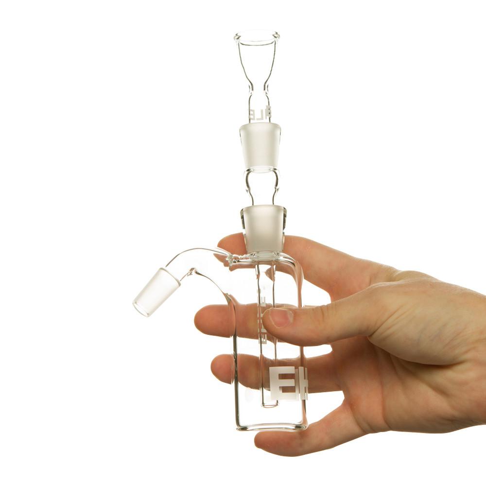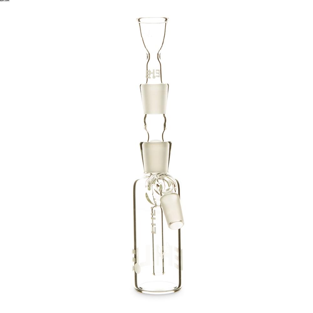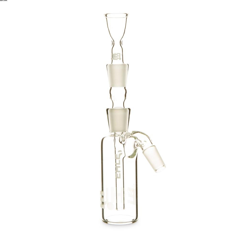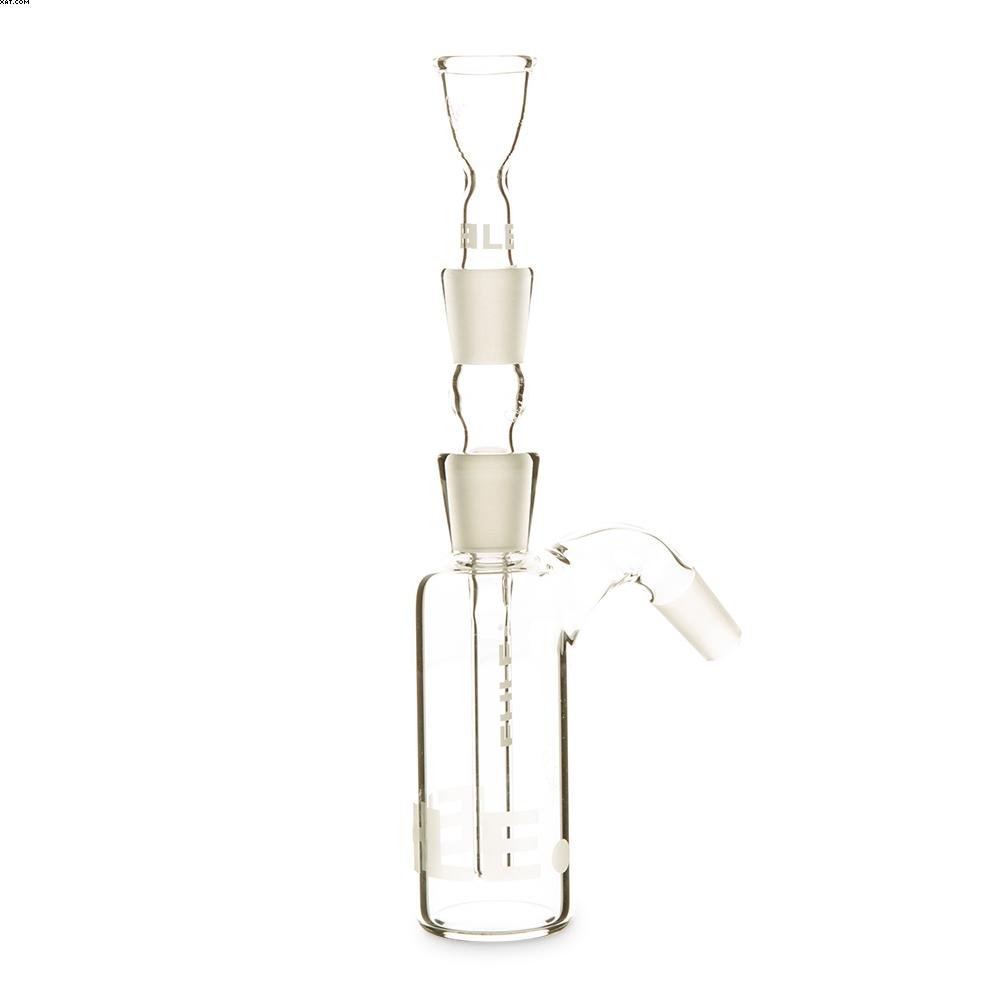 EHLE Precoolers serve by pre-filtering contaminates through its own water chamber before the smoke even enters the main pipe. The entire system consists of a classic bottle-shaped water chamber, downtube and bowl.