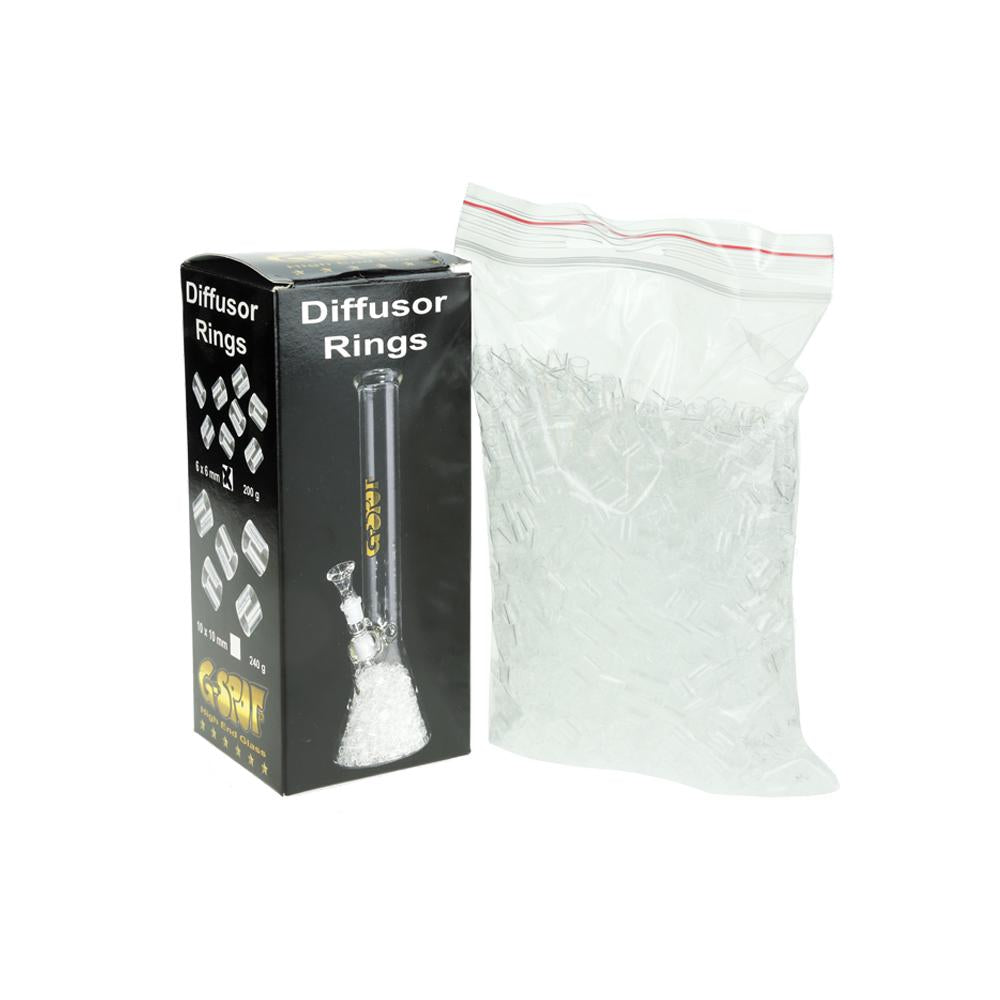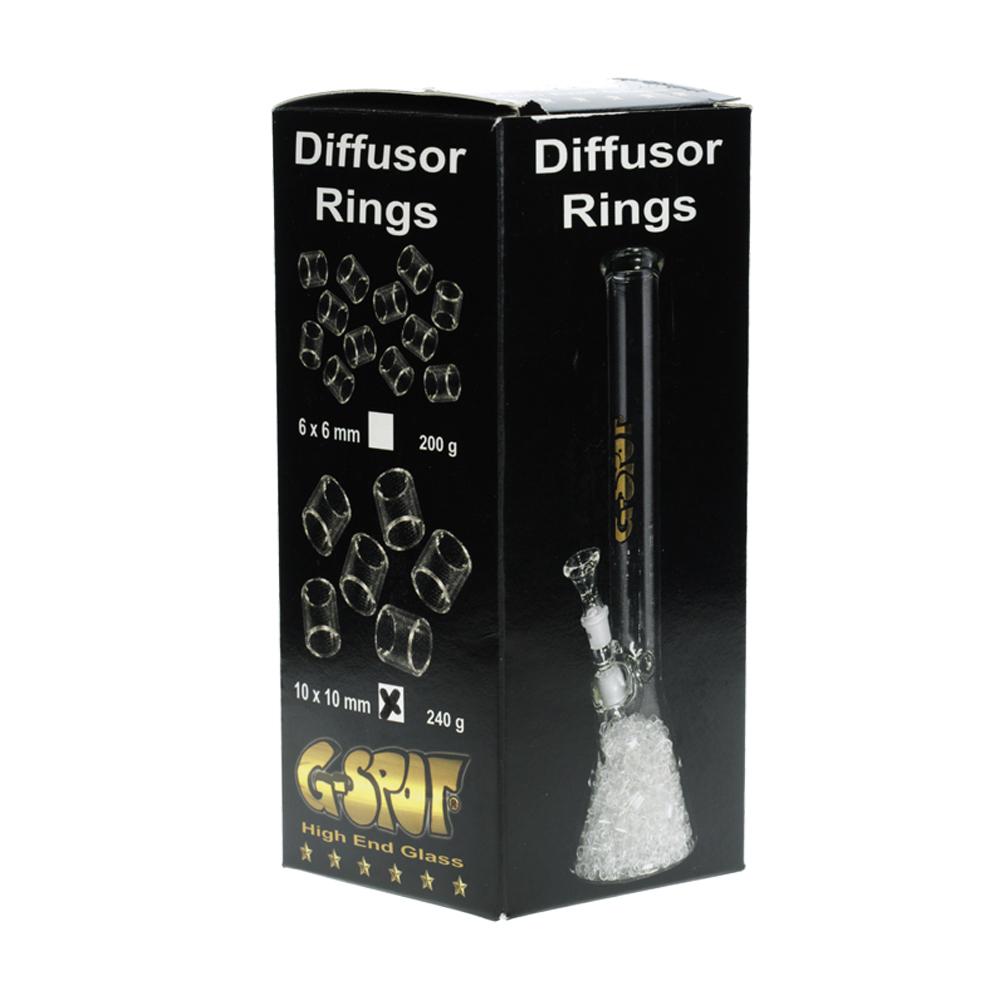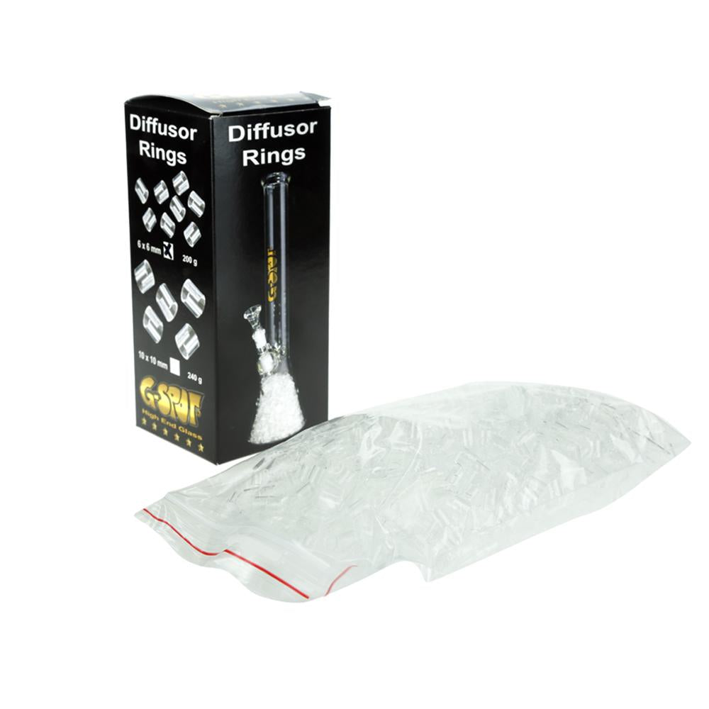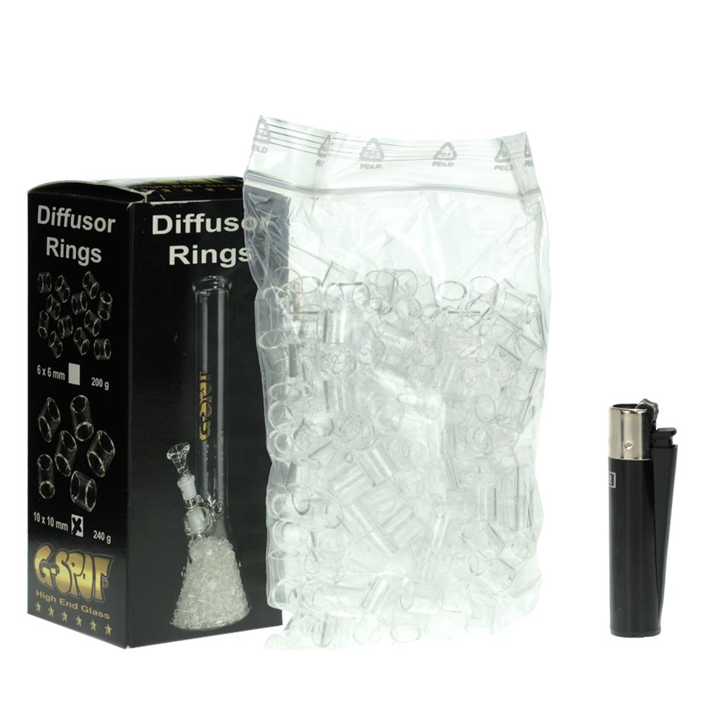 The glass diffusor rings from G-Spot are 6mm in size - which is ideal for straight cylinder bongs or water pipes with ice notches.