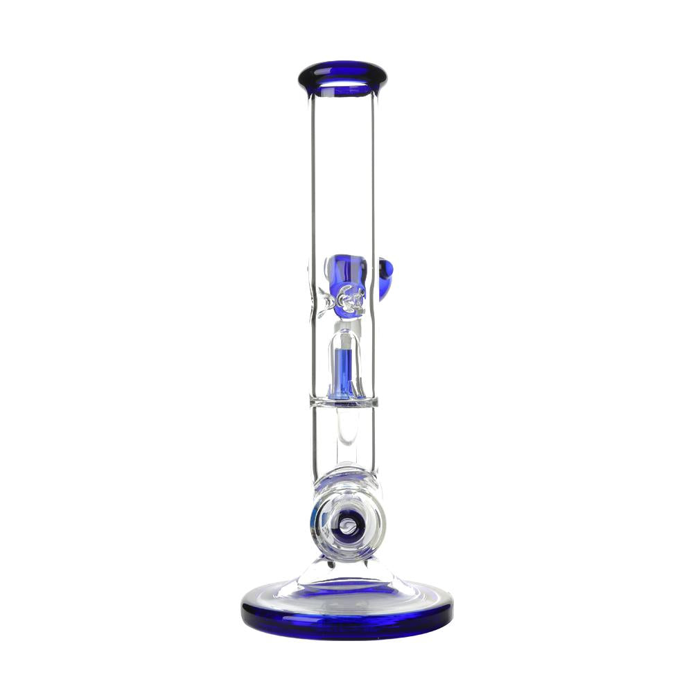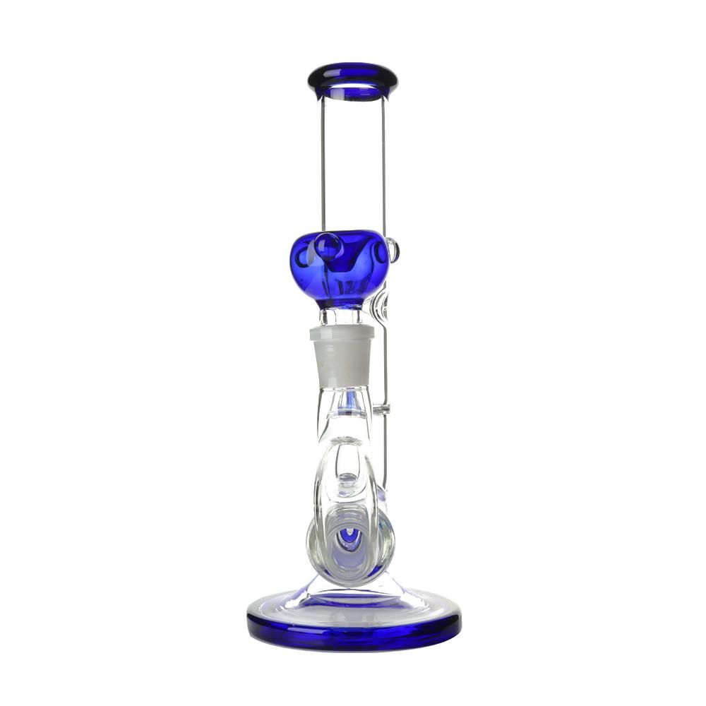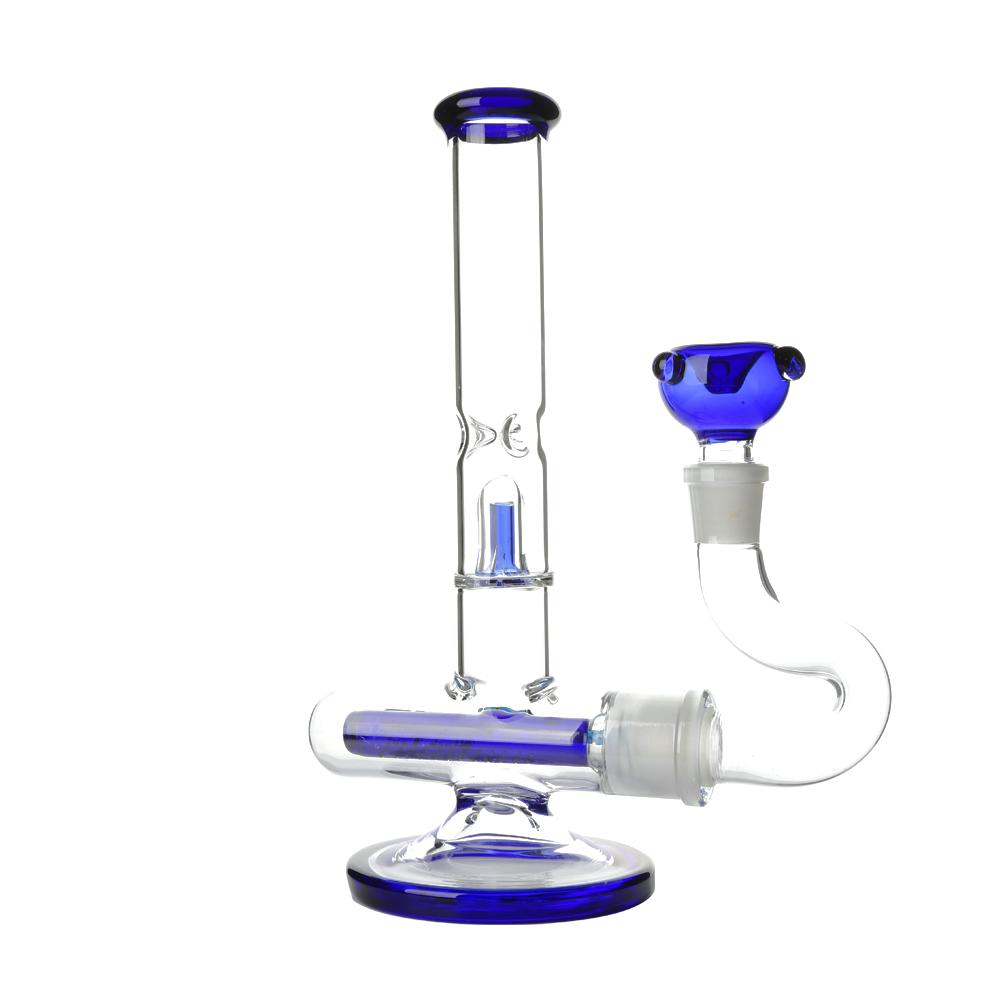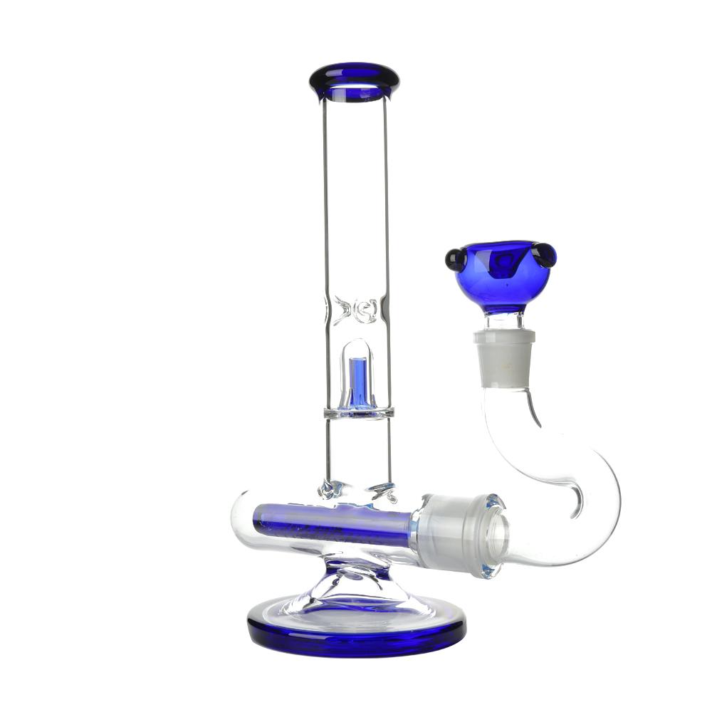 The perc is easily removed for cleaning as it forms part of the downpipe adaptor. Moving up the straight tube there is a 4 slit splash guard which is placed just below the ice notches. The mouthpiece, percolator, splash guard and glass bowl are all cobalt blue in colour and the bowl includes ‘roll stop’ nodules to prevent it rolling around.