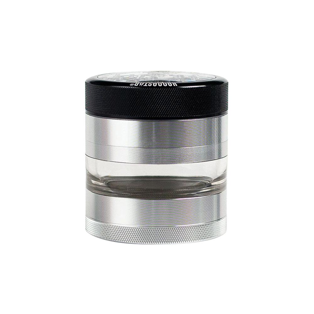 With a clear top and jar body, you can see what is going on as you grind. At just 56mm in height, this grinder is very pocket-friendly, however, if you want to make it even smaller, it can be reduced to a 3 piece by removing the sifting chamber.
