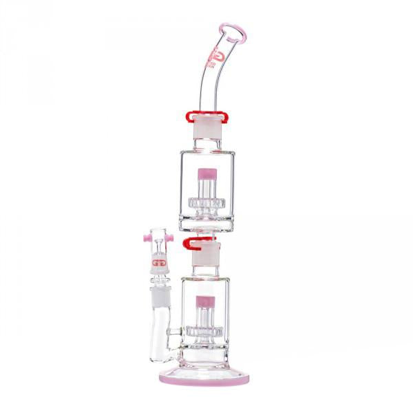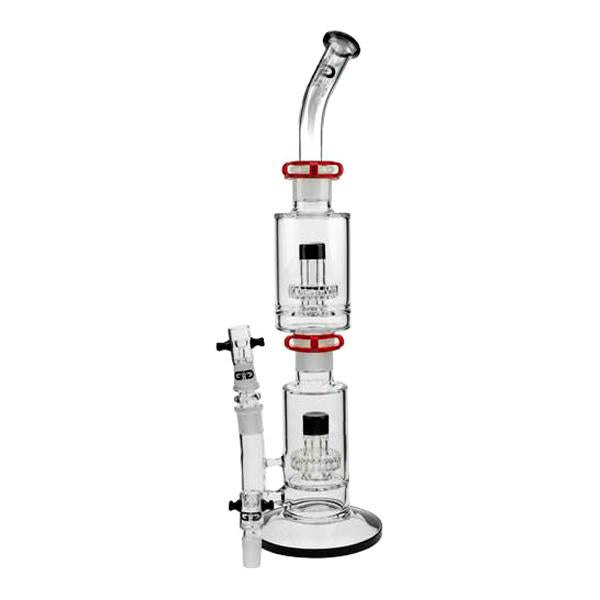 Each of the bongs chambers houses a colour coded showerhead perc and are constructed entirely from 4mm borosilicate glass making sure that your smoke is filtered and cooled effectively and efficiently before reaching the 35mm flared mouthpiece providing a superior smoking experience.