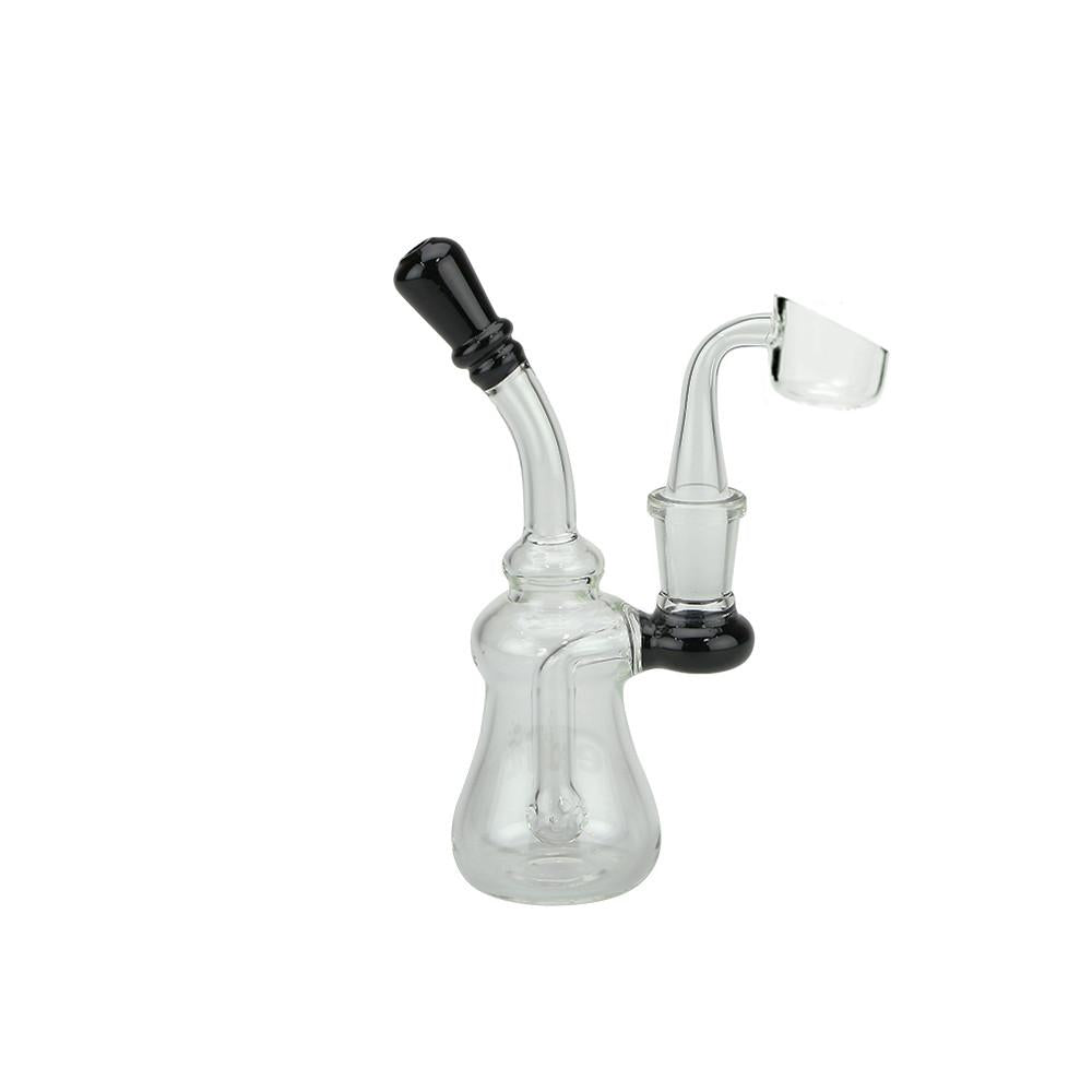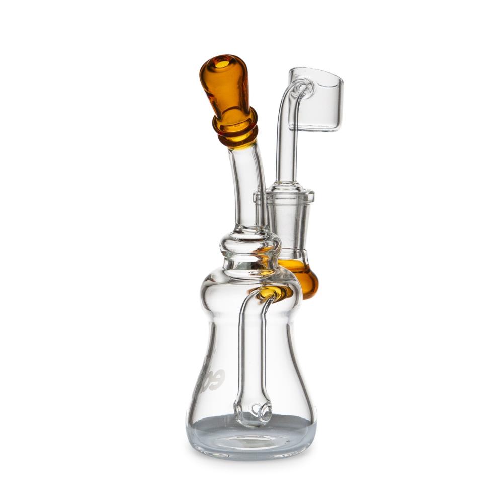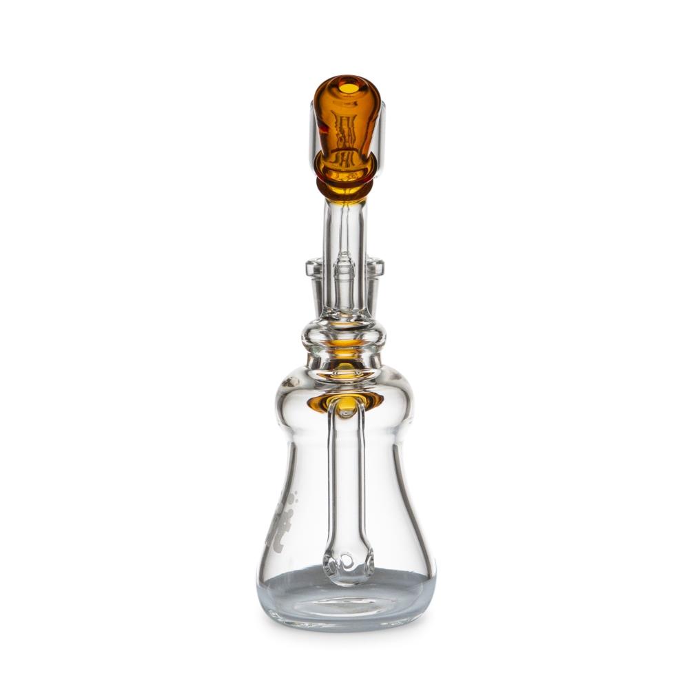 The Mini Bell Bubbler from the EDIT Collection is an ideal addition to any glass collection. Small and sturdy at the same time, this little guy delivers quite the hit. Colored glass accents on the joint and mouthpiece match perfectly, and the included quartz banger ensures full functionality right out of the box.