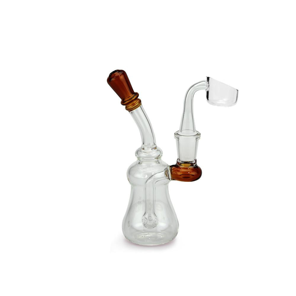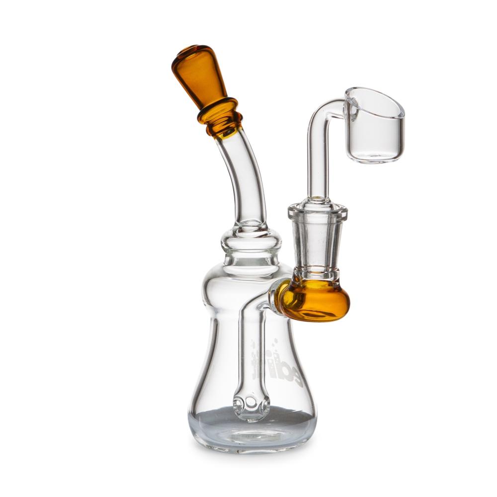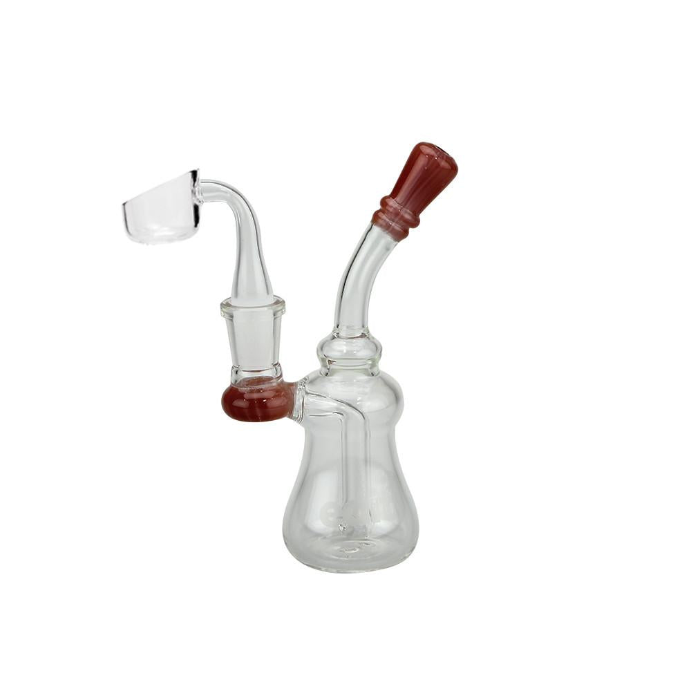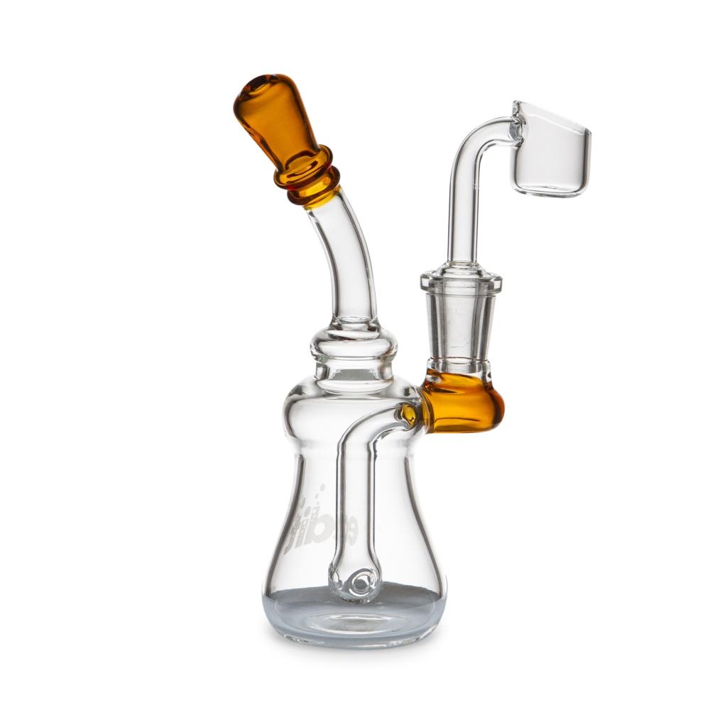 The Mini Bell Bubbler from the EDIT Collection is an ideal addition to any glass collection. Small and sturdy at the same time, this little guy delivers quite the hit. Colored glass accents on the joint and mouthpiece match perfectly, and the included quartz banger ensures full functionality right out of the box.