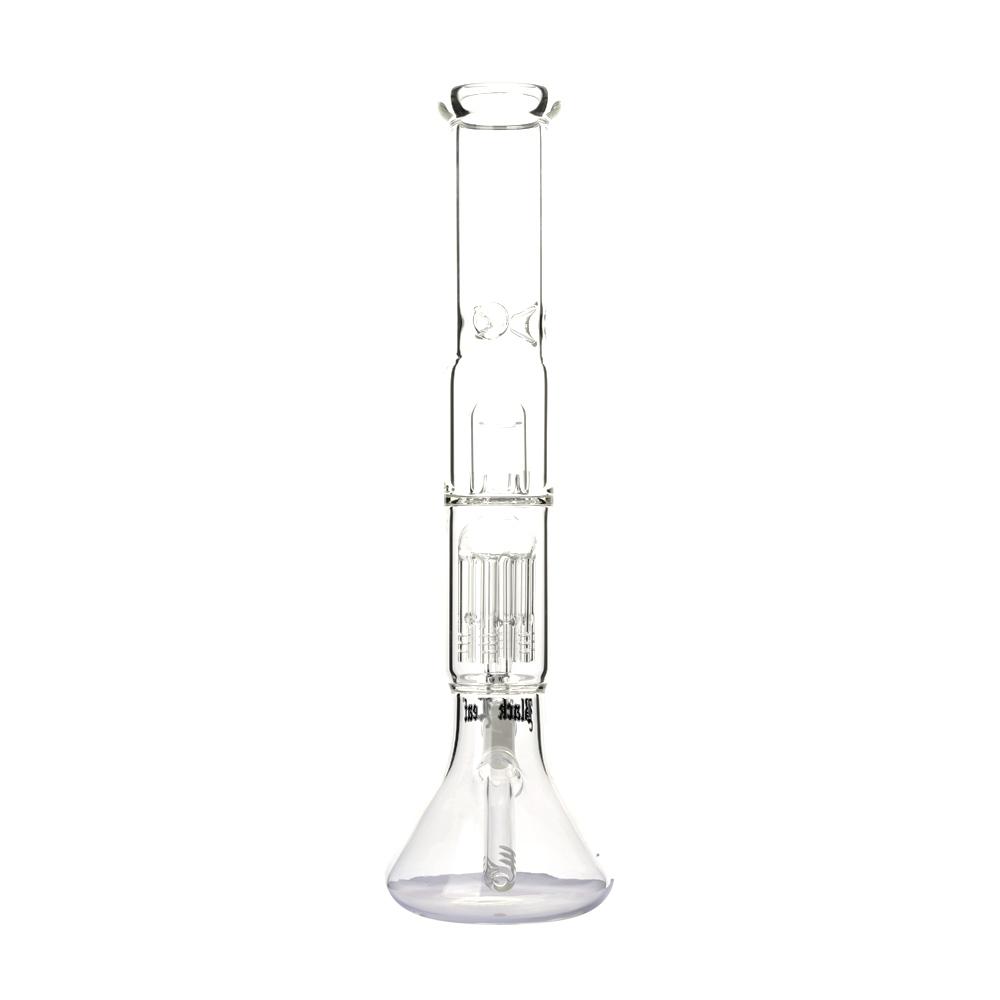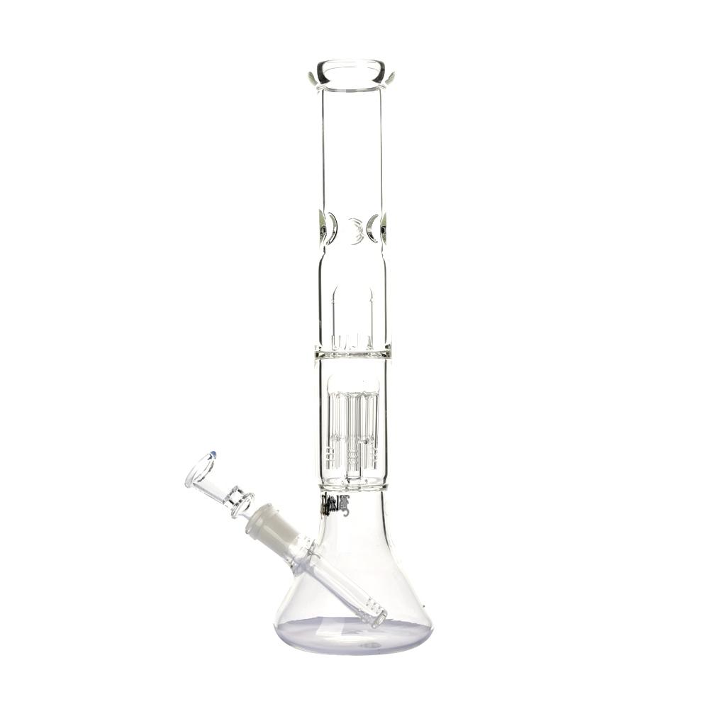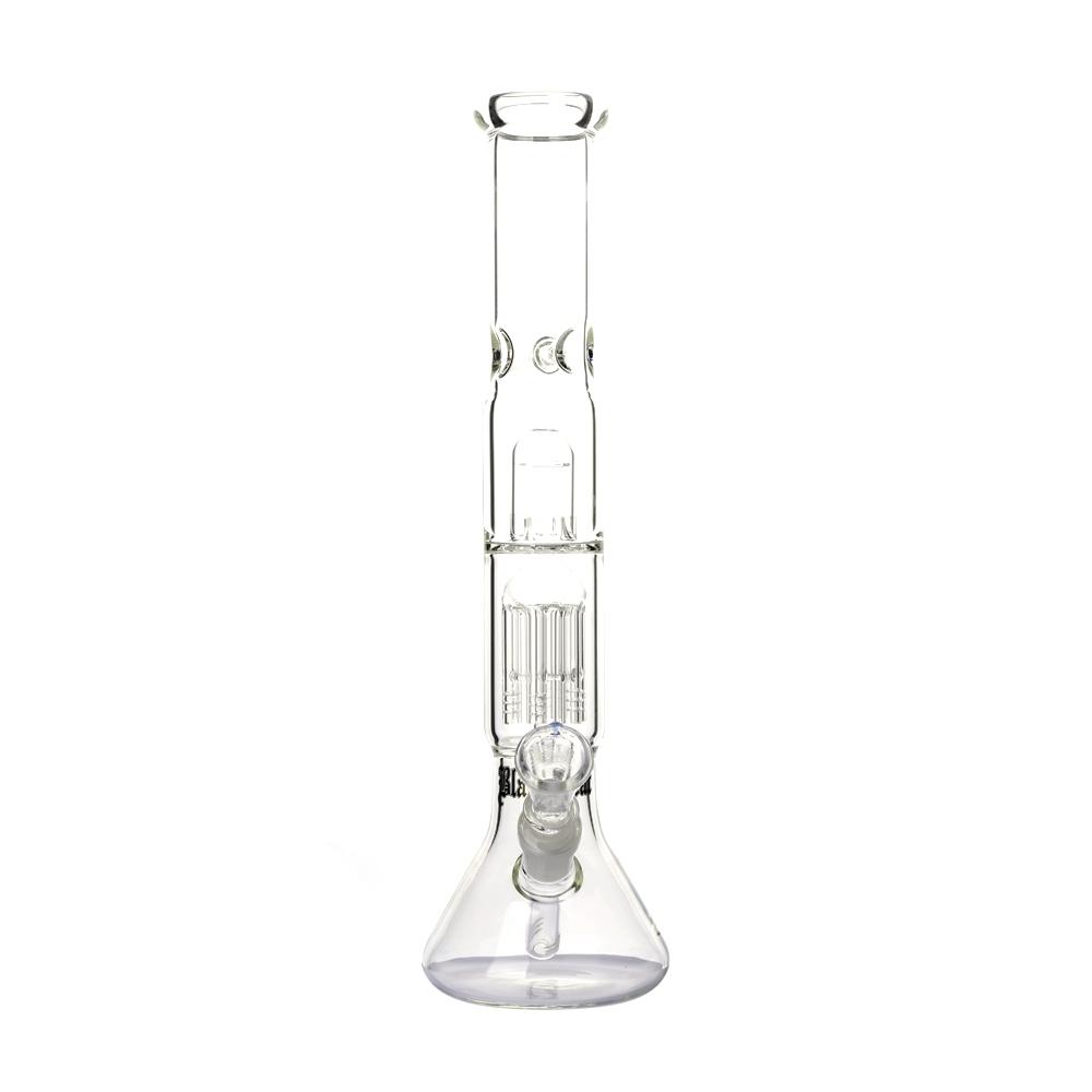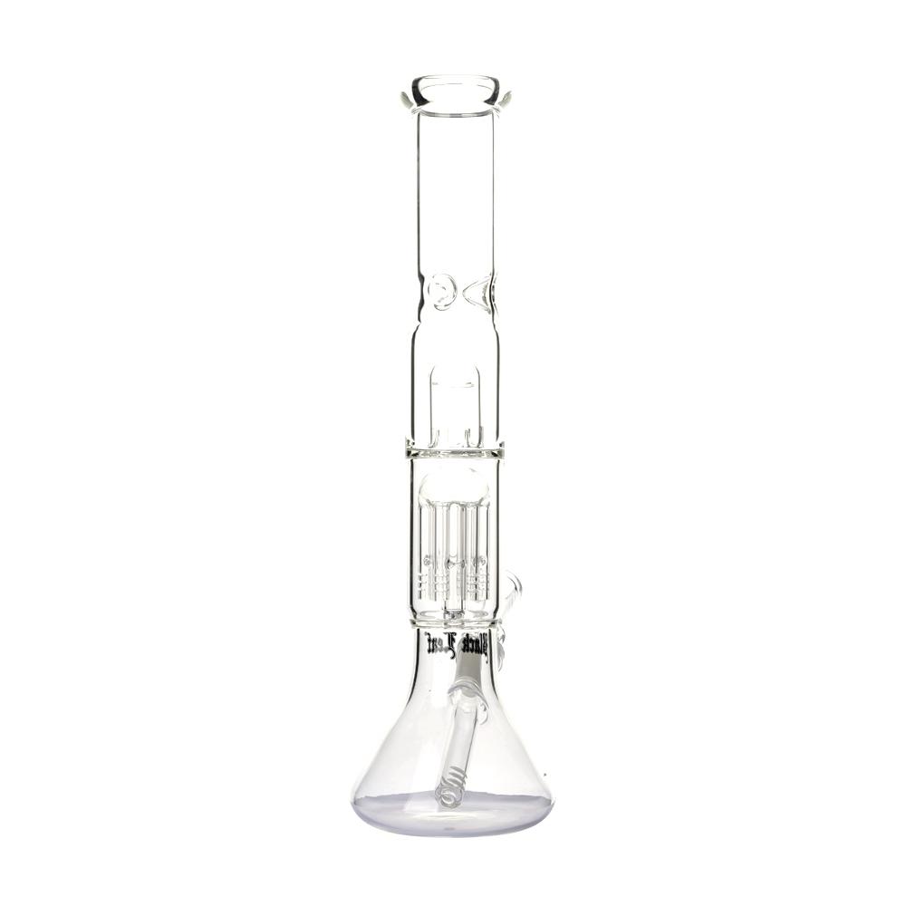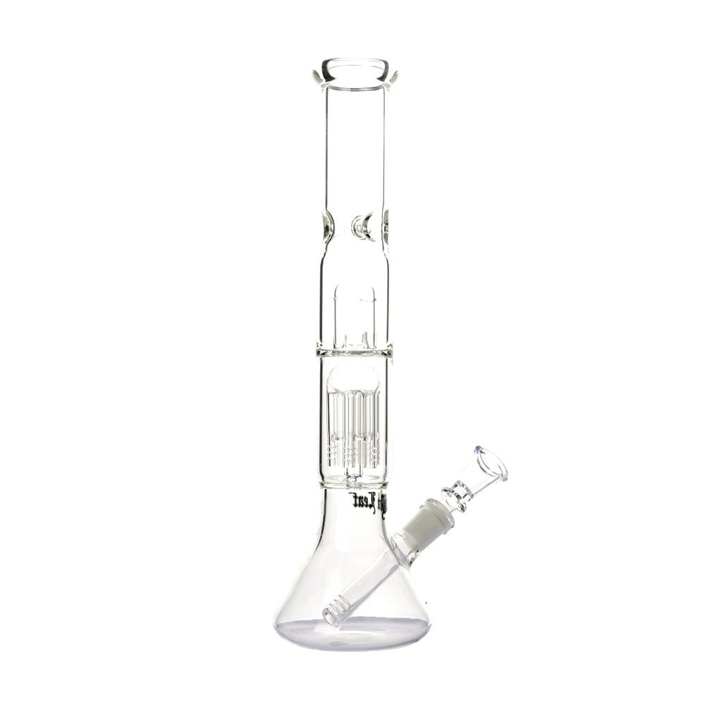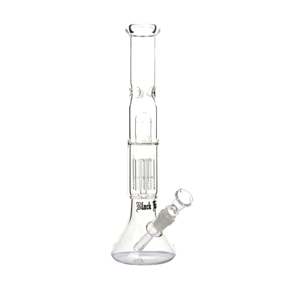 Using 5mm thick glass, this Black Leaf Glass beaker Bong features clear glass expanded sections and a clear glass 6-arm tree perc to guarantee a smooth experience each and every time.
