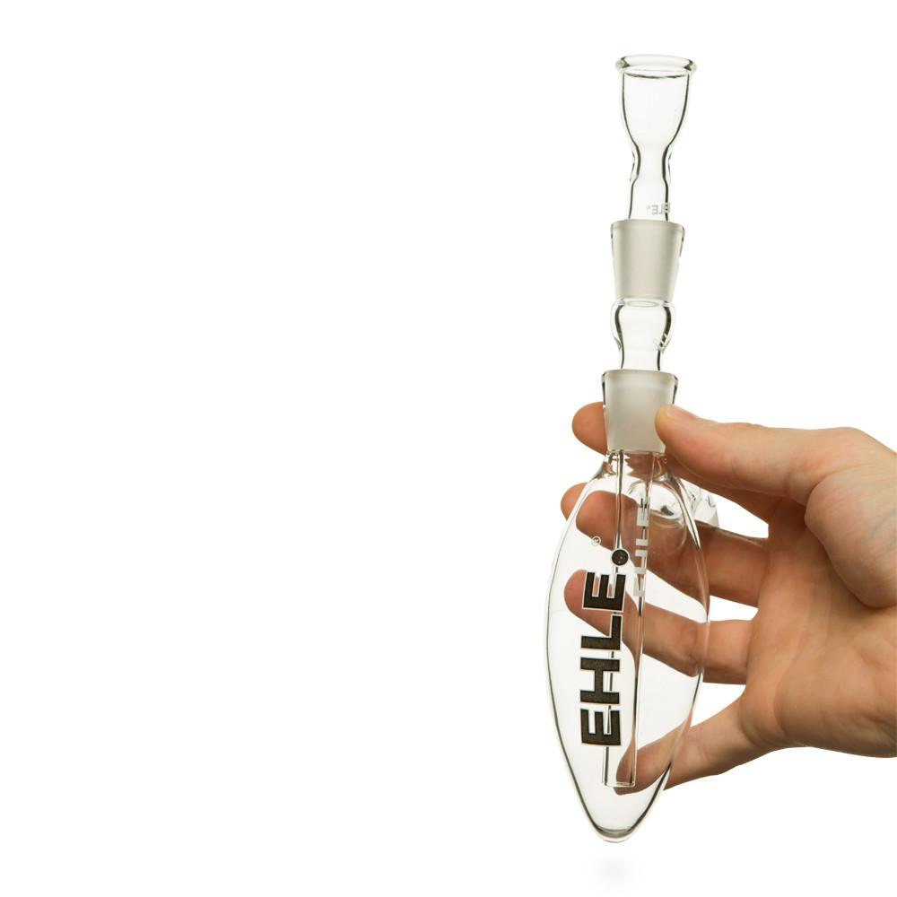 EHLE Teardrop Pre-coolers serve by pre-filtering contaminates through its own water chamber before the smoke enters the main pipe. The entire system consists of a teardrop-shaped water chamber, downtube and bowl.