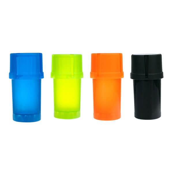 These pots are around 85mm in depth and 38mm in diameter and when closed, create an airtight and watertight seal. There is also a hidden grinder compartment, perfect for pulverising your herbs and spices into a more manageable size. They are plain in design with no logos. Colours may vary.