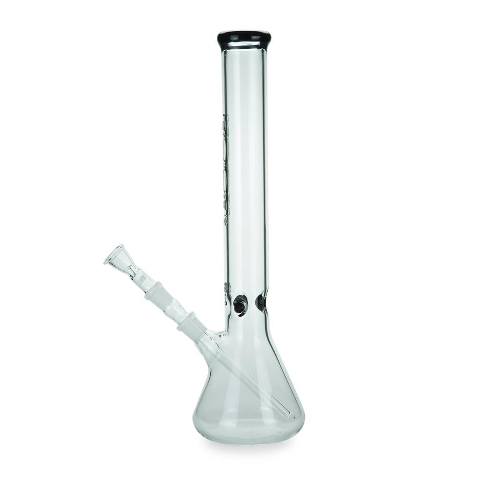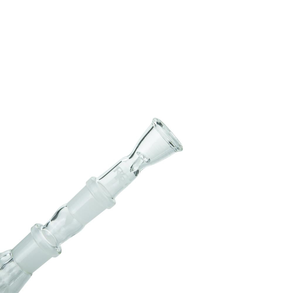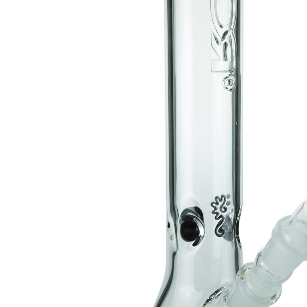 The Roor Bong Custom Little Sista - Dark Knight is crafted using high quality Borosilicate glass. The dark in color mouthpiece of this custom Roor pipe is matched by a dark colored ice notch and sig. This bong offers a 10cm extension that provides more smoke capacity within the chamber than other 35cm Little Sistas, while the ice notches allow you to fill the chamber with even more ice to help smooth and cool the smoke.