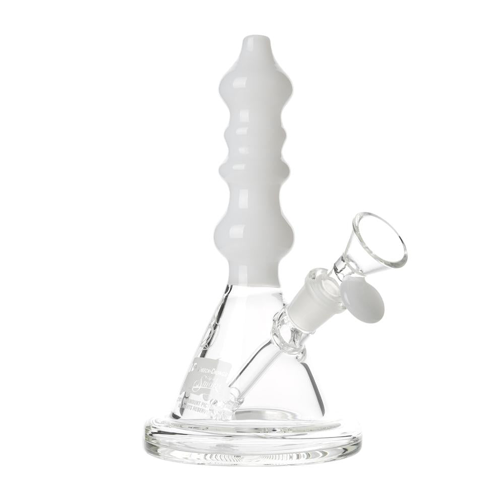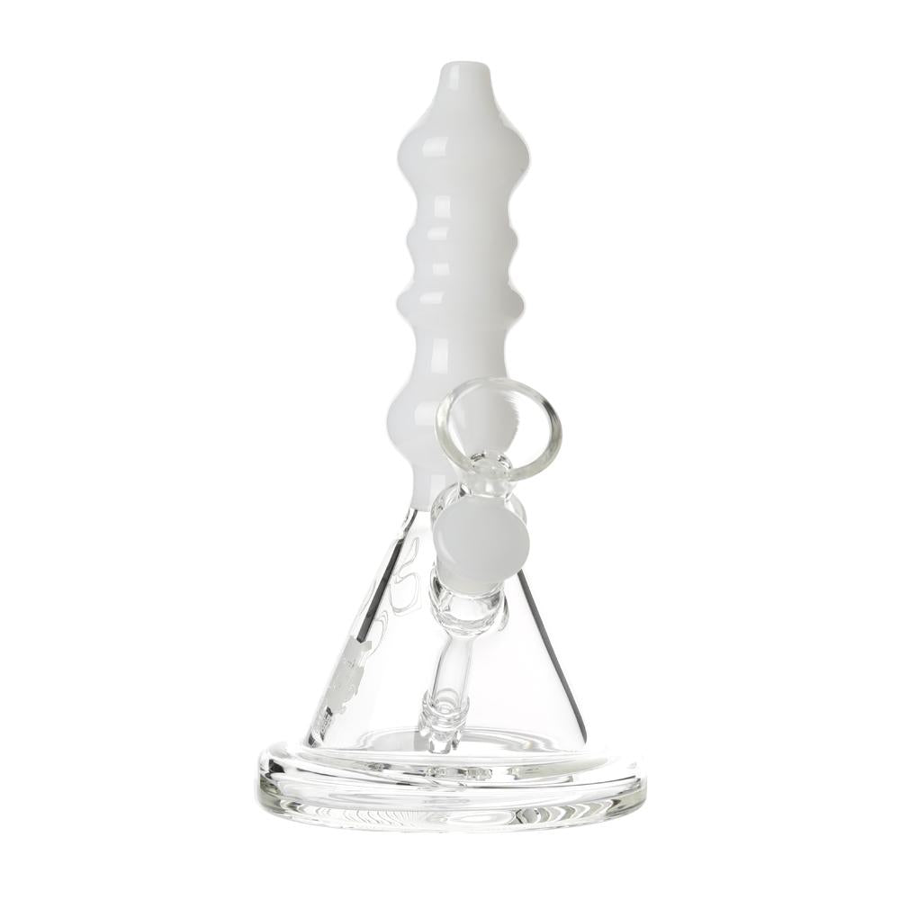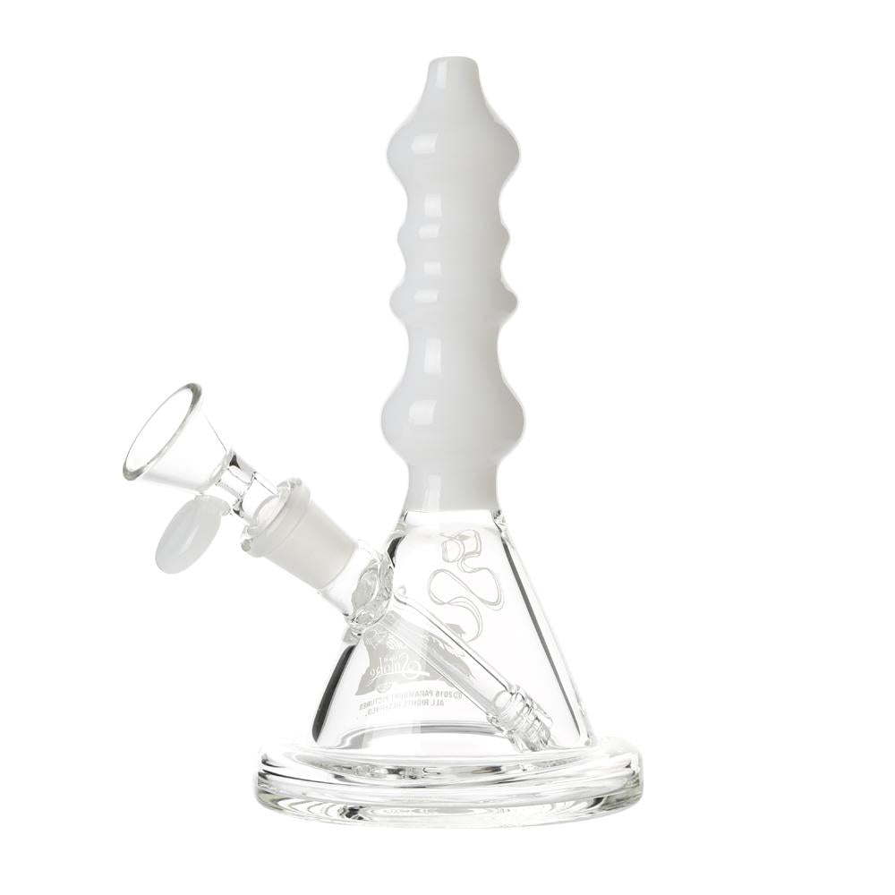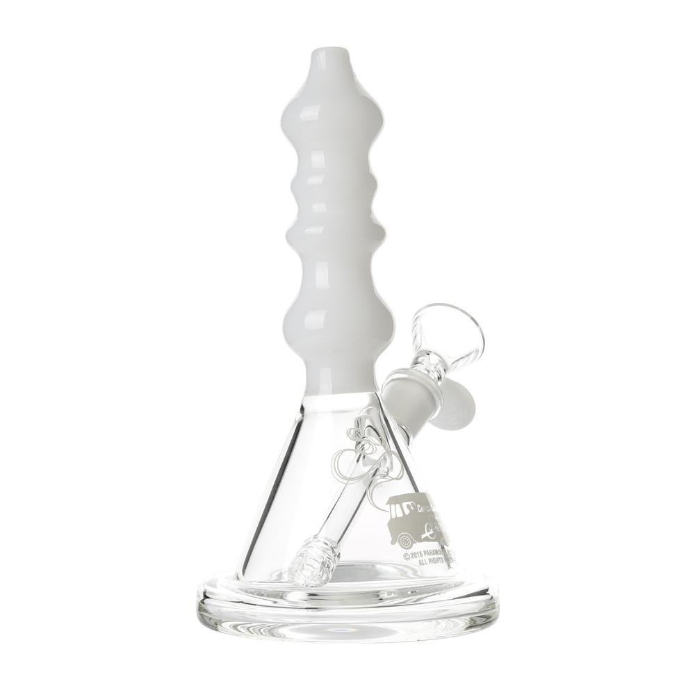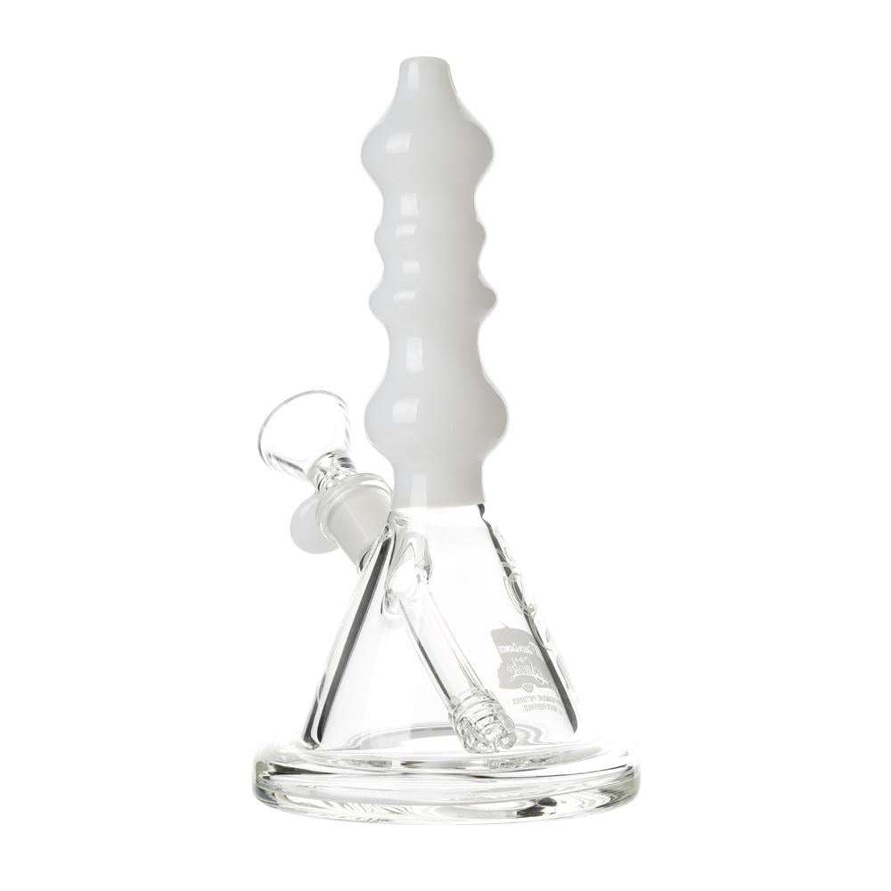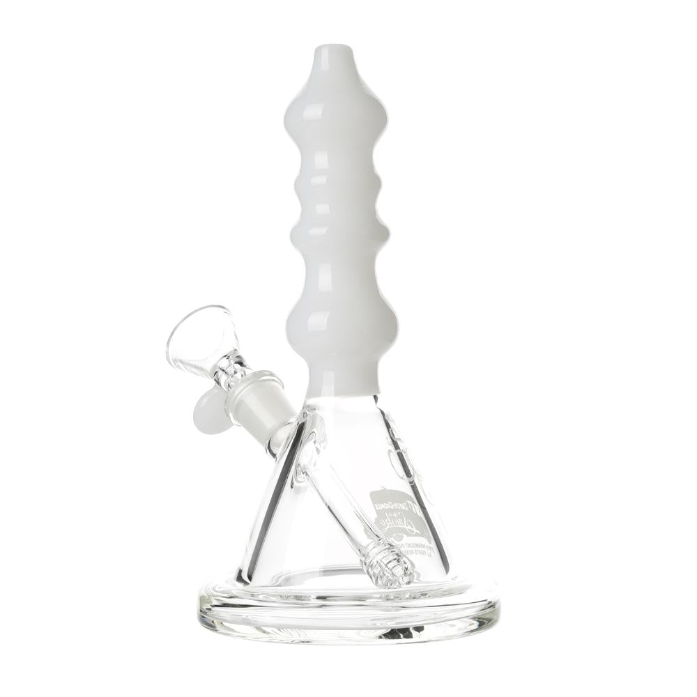 The Sgt. Stadenko is just as much of a one off as the man himself. The beaker base looks fairly normal and does it's job of increasing capacity to give you bit fat rips, but the neck is totally out there with pinched sections that cause the smoke to cool and increase in density as it rises. You can choose between white detailing and black detailing and whatever color neck you choose they also print the Cheech and Chong Up In Smoke logo on the side in the same color to keep the lok going all the way through the piece. The fixed downstem has a diffuser at it's base to break up the bubbles and they include a 14.4mm male flower bowl to complete the set. Choose either Black or White from the dropdown menu above.