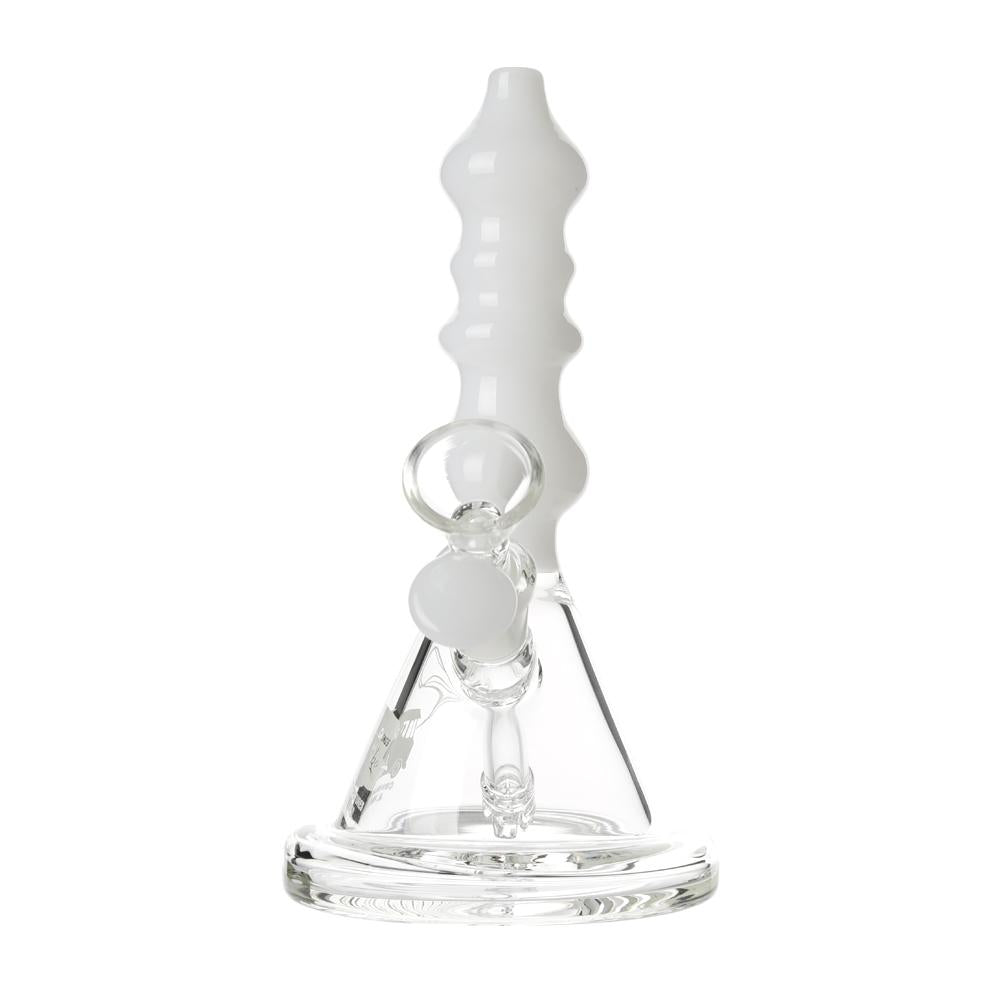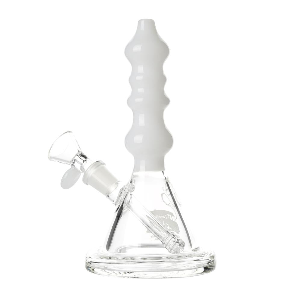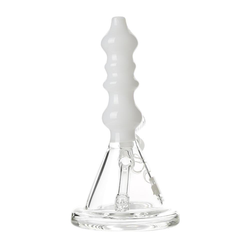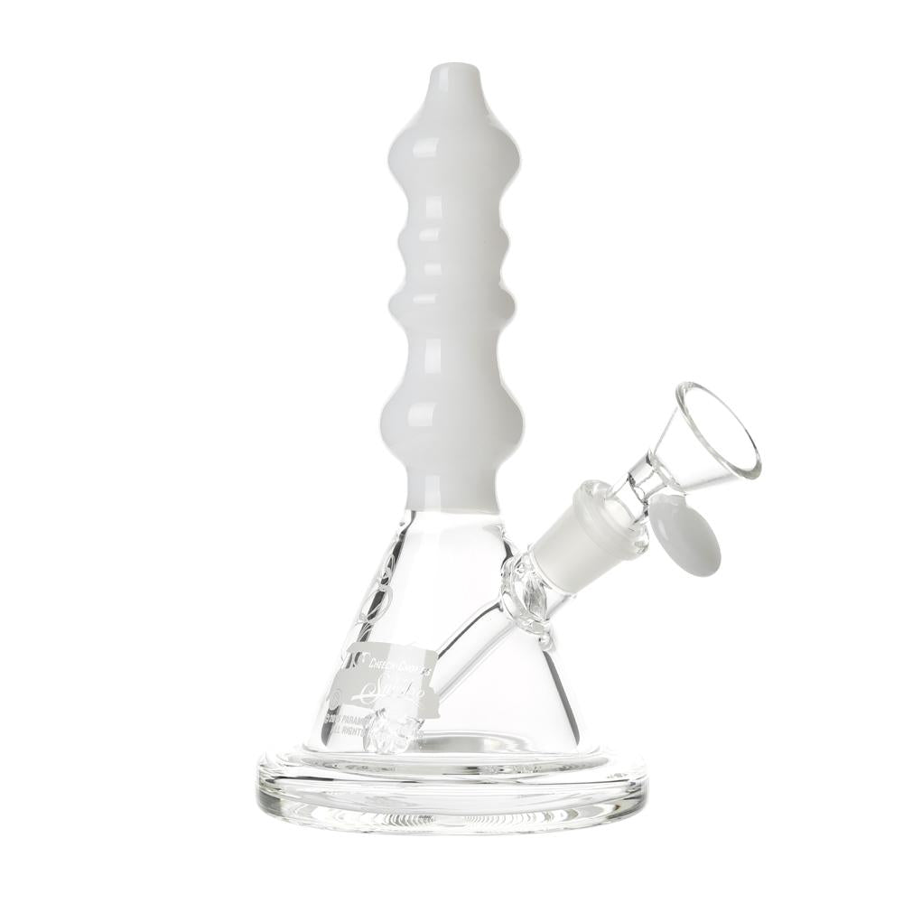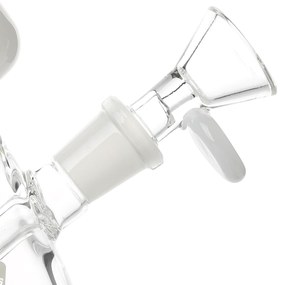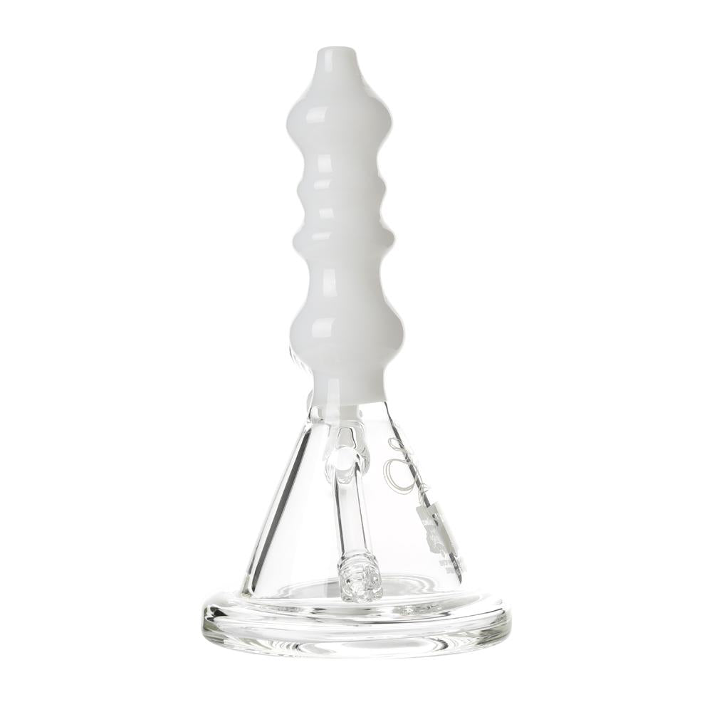 The Sgt. Stadenko is just as much of a one off as the man himself. The beaker base looks fairly normal and does it's job of increasing capacity to give you bit fat rips, but the neck is totally out there with pinched sections that cause the smoke to cool and increase in density as it rises. You can choose between white detailing and black detailing and whatever color neck you choose they also print the Cheech and Chong Up In Smoke logo on the side in the same color to keep the lok going all the way through the piece. The fixed downstem has a diffuser at it's base to break up the bubbles and they include a 14.4mm male flower bowl to complete the set. Choose either Black or White from the dropdown menu above.