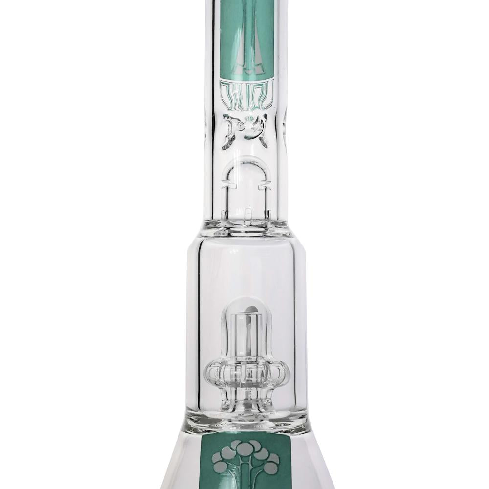The beaker base design makes it sturdy as well as enabling it to hold more water for better filtration. It has a fixed male diffuser which helps break up, filter and smooth your smoke. It also has a showerhead perc to further filter and cool your smoke as it travels up the pipe. Above the showerhead percolator is a splash guard, ensuring you get no foul tasting water enter your mouth when you're using it. Above the splash guard sits three ice notches, allowing you to stack up some ice if you want even further cooling to your smoke. With stunning detailing on them, these functional rigs perform just as good as they look. Available in a choice of designs, please see drop down for options.