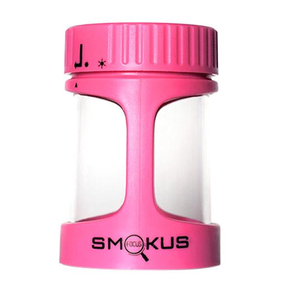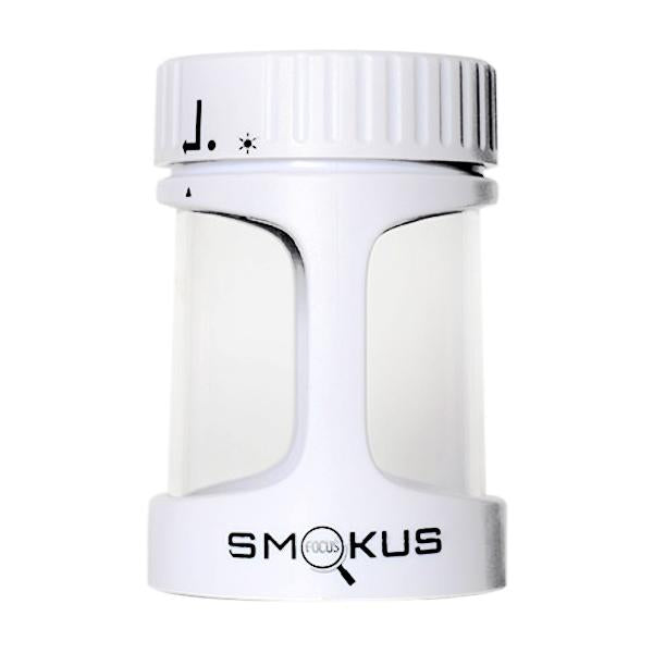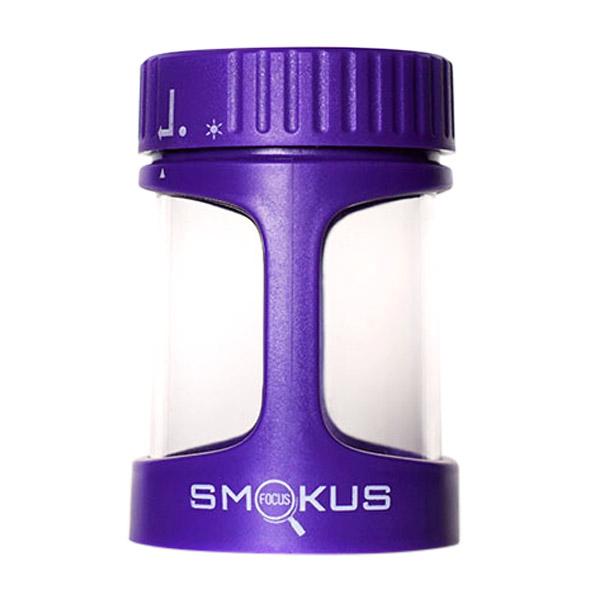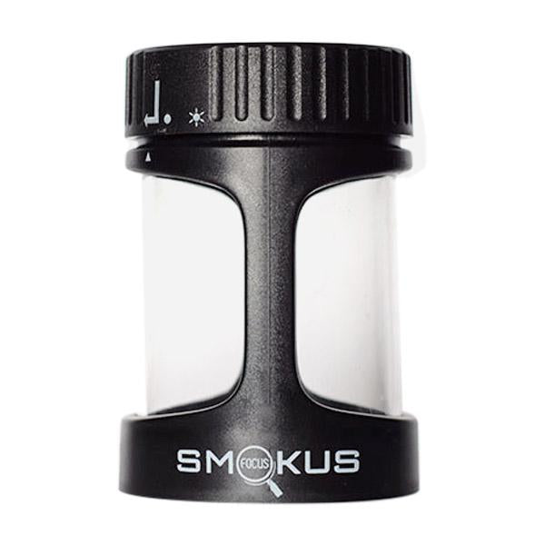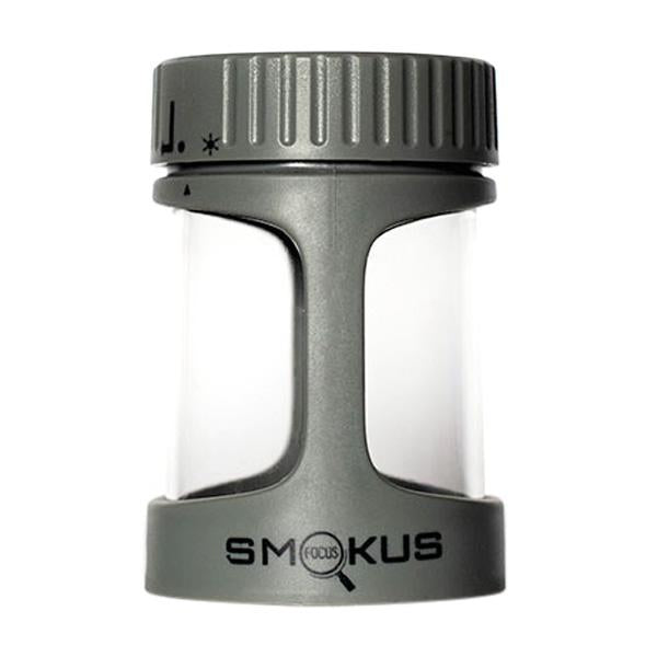 The Smokus Focus jars have become the World's First Rechargeable, pocket sized magnifying display jar. The Jar has a 12 hour battery life and has an air tight seal. Smokus Focus jars have become the official storage and display containers of the flower industry. All jars are rechargeable and come with a charging cable. The magnification level on the Stash jar is 5 X. The Stash jar dimensions are 2 inch Diameter, 3 inches tall.