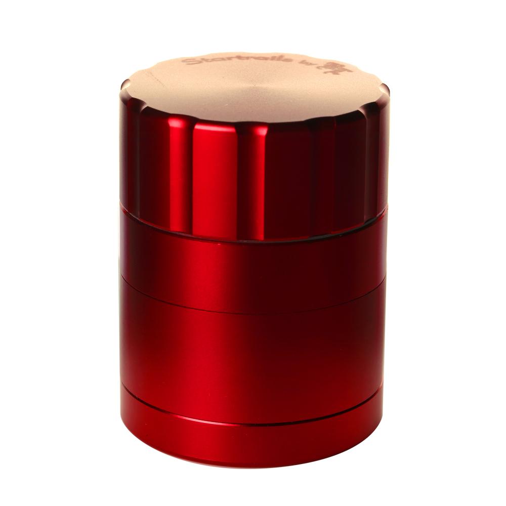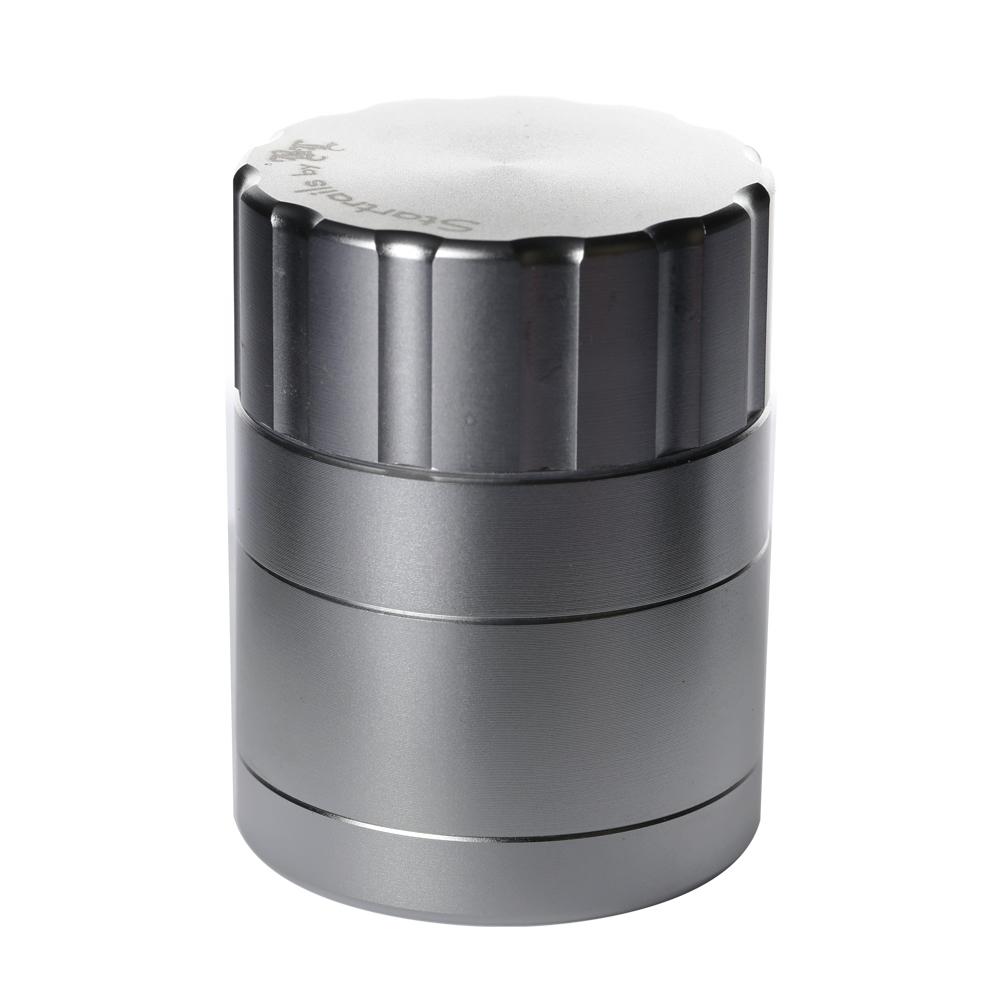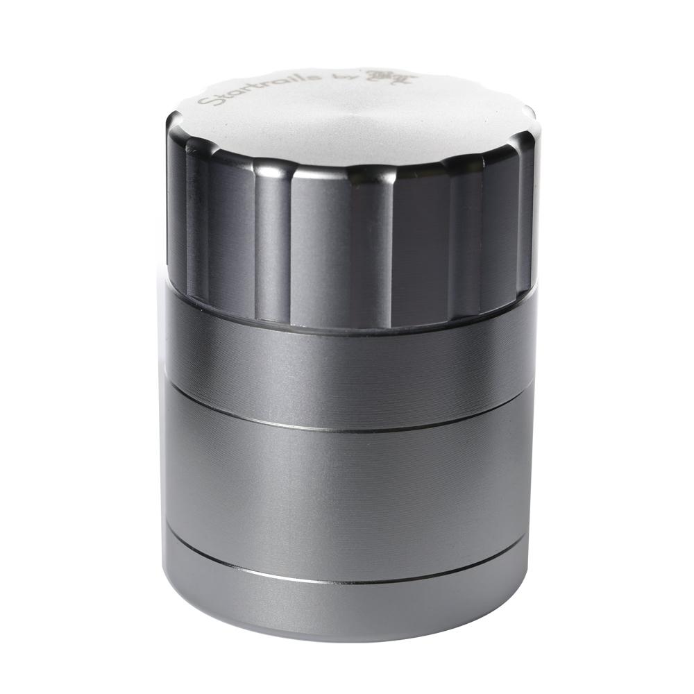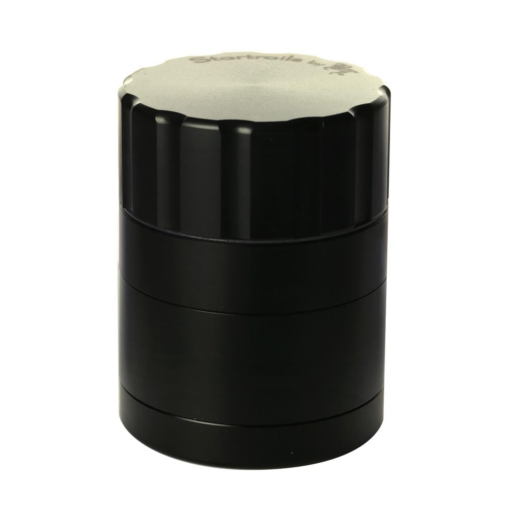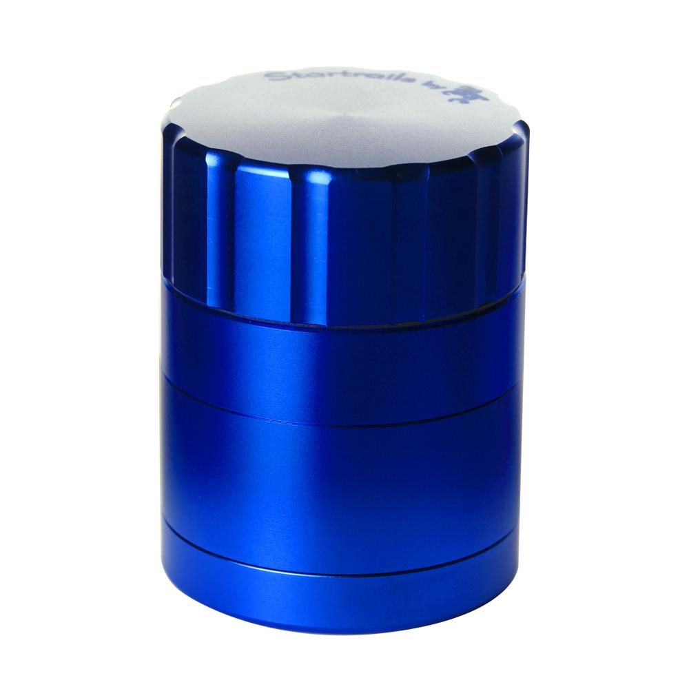 Black Leaf are one of Europe's most respected and popular glass water pipe manufacturers who always make sure they offer stuff at amazing prices and now they have ventured out into the grinder game. This Startrails grinder is a 4-part design that uses blade shaped cutting teeth to cleanly slice even the dankest and stickiest material. The result is perfectly ground material that comes out the right consistancy every single time without any squashing or crushing of the precious resin sacks on your herbs. Once ground, the herbs can fall through precisely drilled holes into the collection chamber below. The two halves of the grinding section are held together by two incredibly strong rare earth magnets which mean it takes genuine effort to get the two halves apart and pretty much guarantees they won't come apart unless you want them to. The sifter screen built into the bottom of the collector area allows any loose resin sacks to fall through into the bottom section of the grinder and stay there, nice and safe, until you want to open it up and scrape it all out with the supplied scraper so that you can put it to good use. Unlike normal grinders that have threaded joins between the bottom three parts, this uses a bayonet-style fitting to ensure a perfect lock but mean it only needs a quick quarter turn twist to unlock it and open it up. We absolutely love all the features this reasonably priced grinder offers which are normally only found on much higher priced grinders, it is the definition of a bargain!