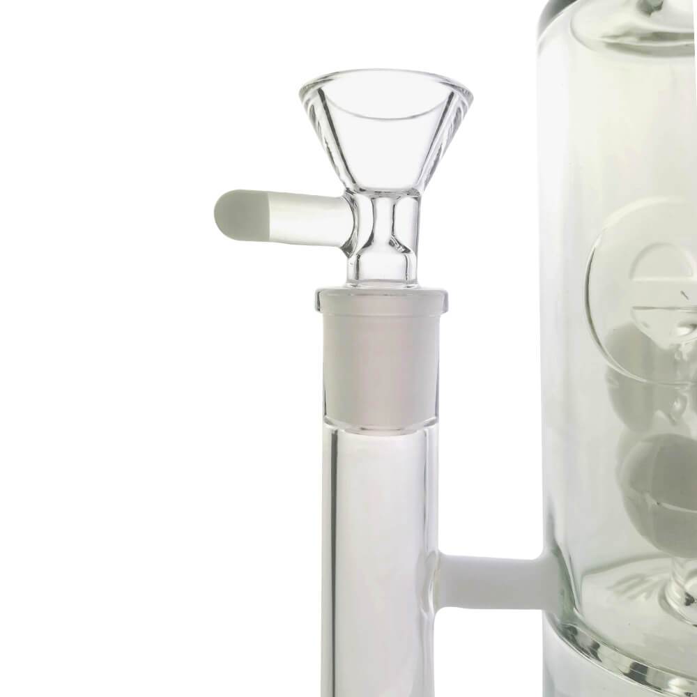 This stemless, double-chamber multi-percolator waterpipe is from our own exclusive and high quality EDIT UK Collection. It is equipped with a female 14.5mm joint, and made from 100% borosilicate piece, it also features a 14.5mm male slide bowl.